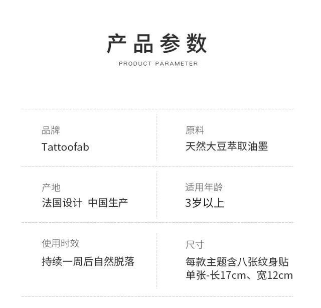 团品: 法国Tattoofab儿童纹身贴(7款可选)