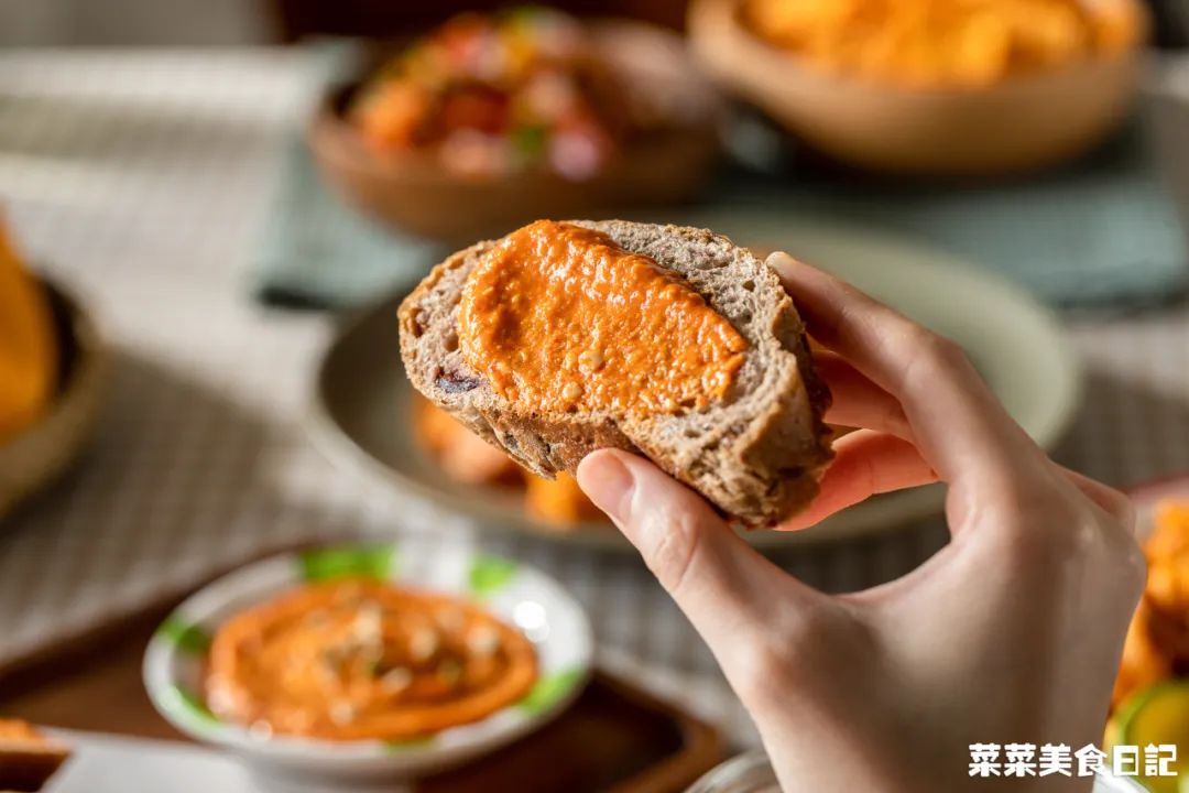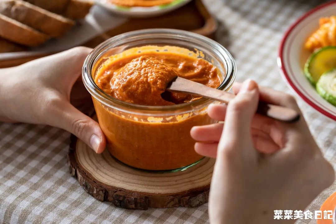彩椒酱原型是西班牙的经典酱汁,红椒坚果酱(Romesco)。
