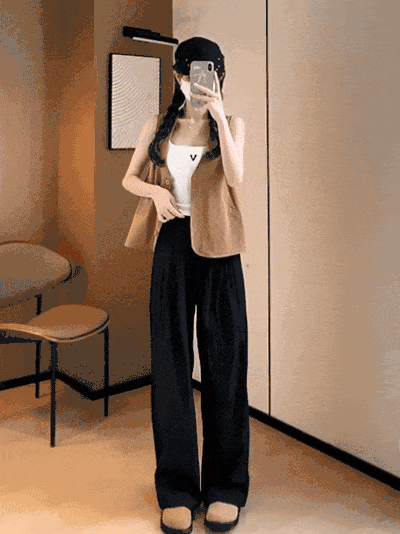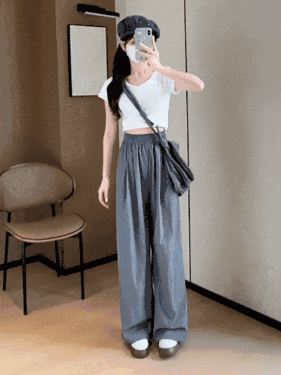 高腰阔腿版型,一秒隐藏腿型缺陷