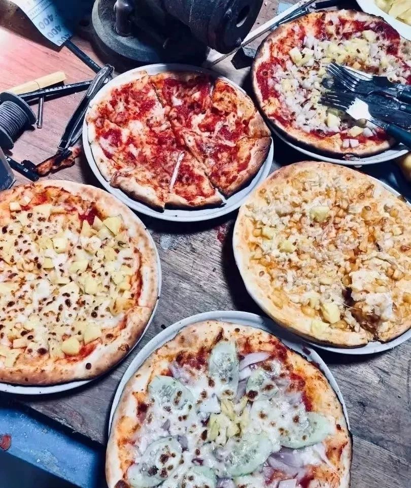 还有色香味俱全,搭配时蔬营养丰富的手工披萨