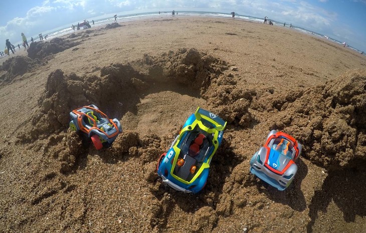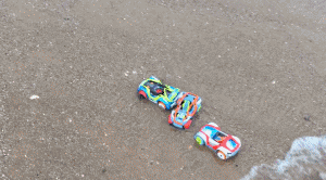 比如带去海边赛道, 让3辆小车洗了个海水浴。