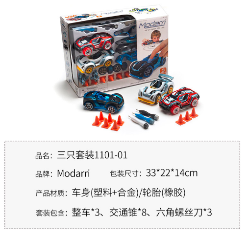 Modarri是个很年轻的美国品牌,出生于2013年,该品牌自称只销售模块化的玩具车系列。所谓“模块化”,其实就是组装的概念并以其独特的创意屡获殊荣