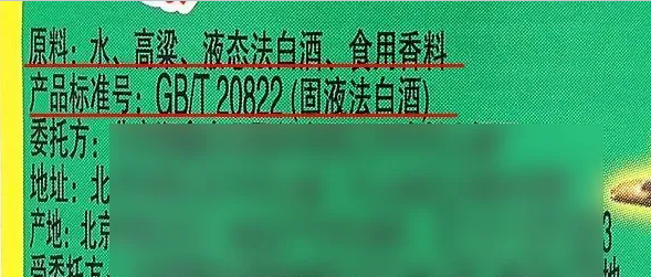 其他固液法酿造的非纯粮食白酒,配料表含有食用酒精或食用香料等字样,不仅口感差,还有一定危害!