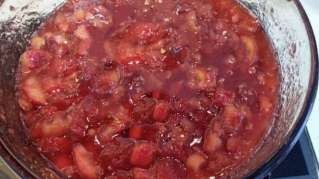 4、将山楂取出,放入小锅中,添少量水,熬煮1分钟,使其变粘稠,关火;