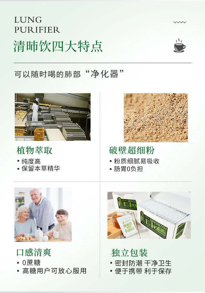 清昁饮主动吸附毒素和脏东西,并将它们排出体外,让肺部由内而外恢复洁净。