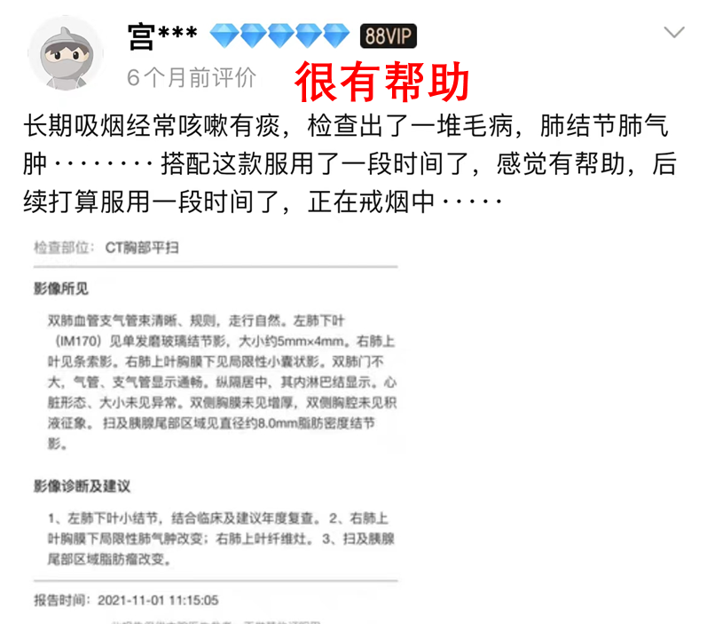 小编爸爸喝了2盒,肺健康改善了,呼吸也顺畅了~