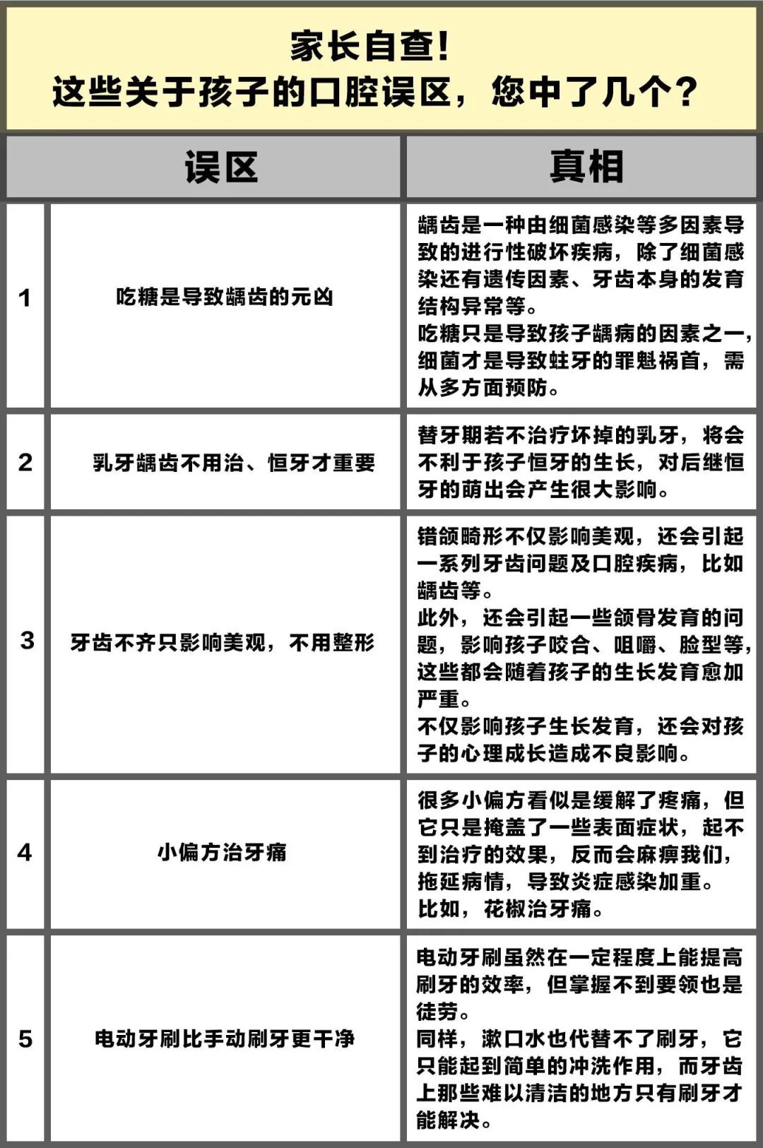 所以,牙齿的健康是孩子健康的一扇窗,作为家长我们要足够重视孩子的口腔问题。不要陷入陈旧的口腔疾病误区中,这样才能更好地保护孩子们健康的牙齿。