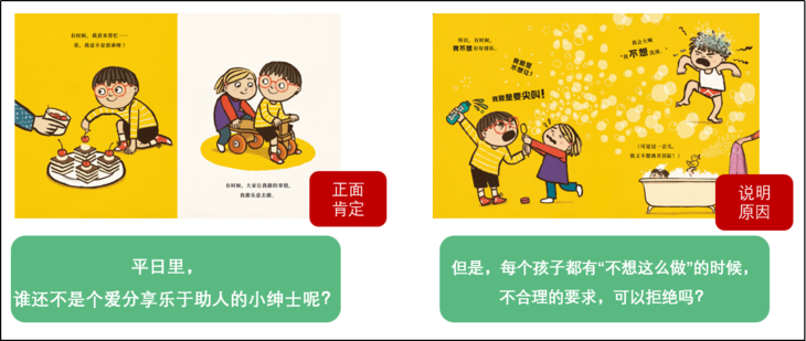 第二个故事是《有时候,我可以拒绝》,讲述的是一个孩子情绪的转折——有时候,他可以自觉地去洗澡,有时候不介意跟人分享或者轮流玩,但有时候,有些事情就是做不到,看起来,这个孩子像是在捣乱,像是在叛逆,但其实,他是需要一点点善意和鼓励。