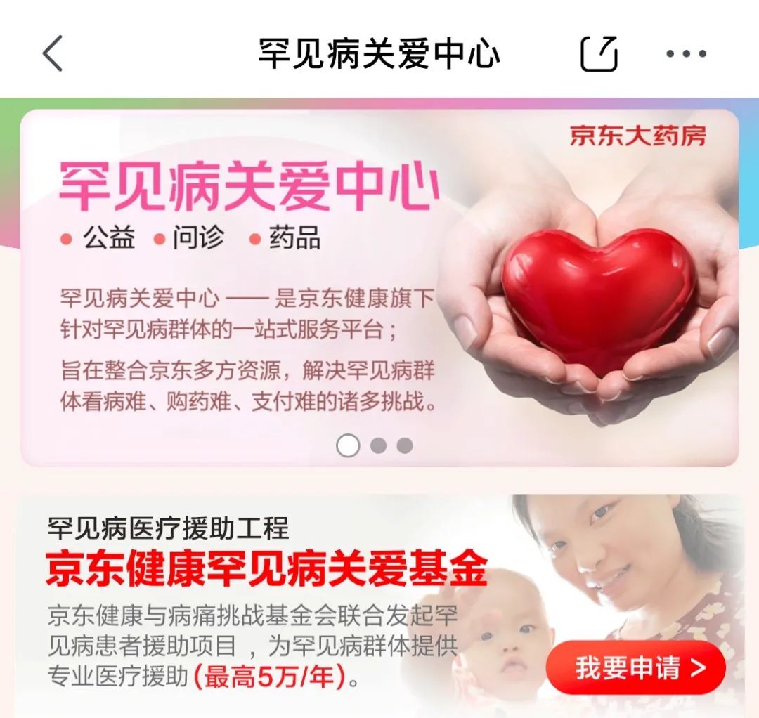 ▲京东app搜索“罕见病关爱中心”