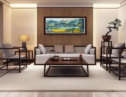 沙发顶上的字画宜横不易竖,若沙发与字画形成两条平衡的横线,那便可收相辅相成之效果。另外,选取茶几,宜以既低且平为原则。如果人坐在沙发中,茶几高不过膝,则合乎理想。