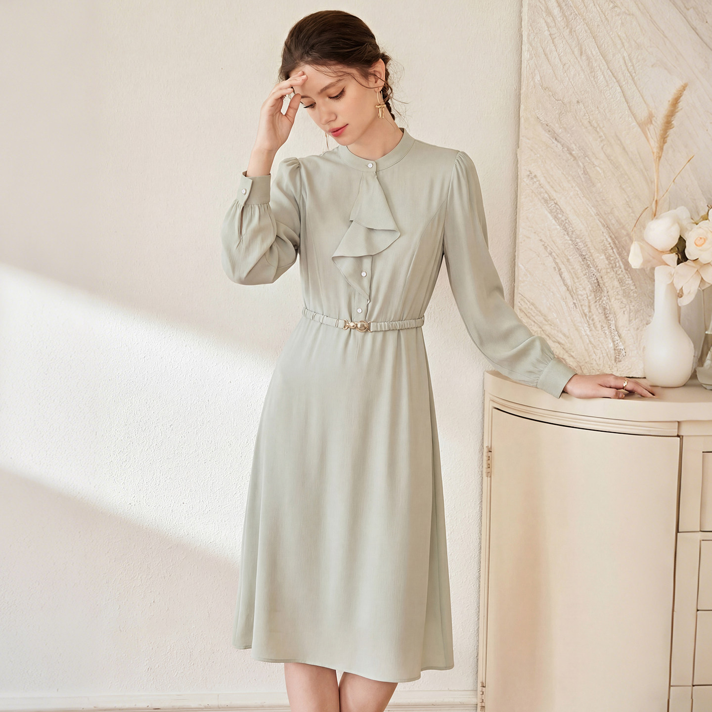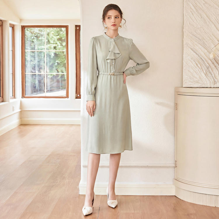 这款薄荷绿长袖衬衫裙,以低饱和的柔和色调,将高级感与实穿性完美融合,成为通勤衣橱里的理想之选。