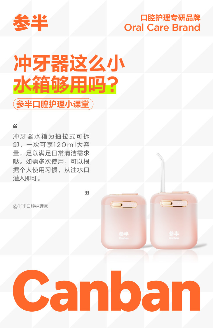 参半口袋魔方冲牙器水箱这么小够用吗?