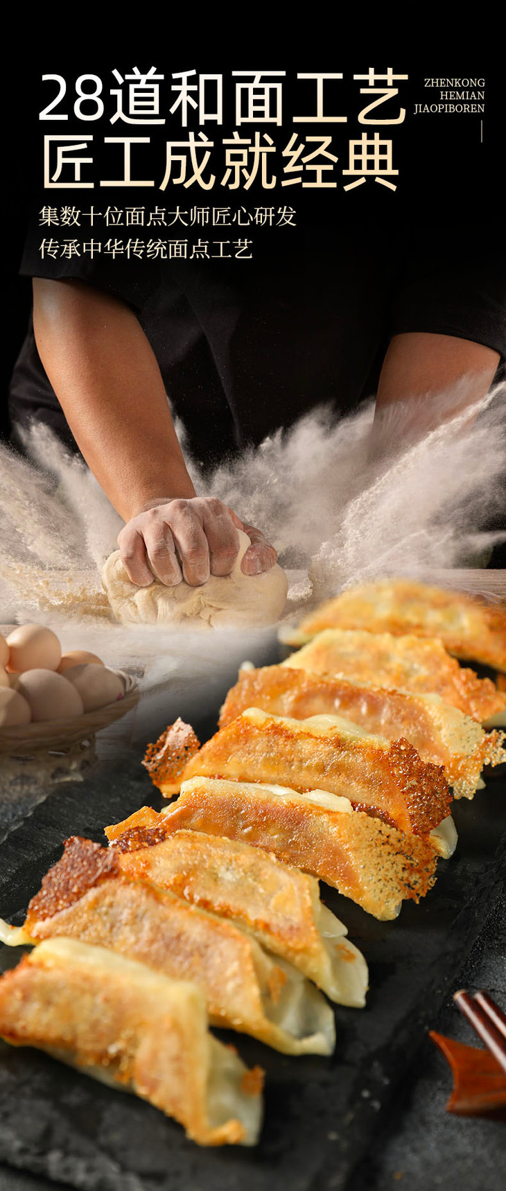 煎饺需要先煎后煮,或者先煮后煎,总之都少不了煮这道工序;而锅贴不需要水煮,师傅们将包好的锅贴整齐码放在平底锅中,先小火慢煎至底面金黄,再沿锅边淋入适量清水,盖上锅盖,利用蒸汽将馅料焖熟,这样的双重烹饪法,让锅贴既有香脆底面,又锁住了馅料的鲜嫩多汁。