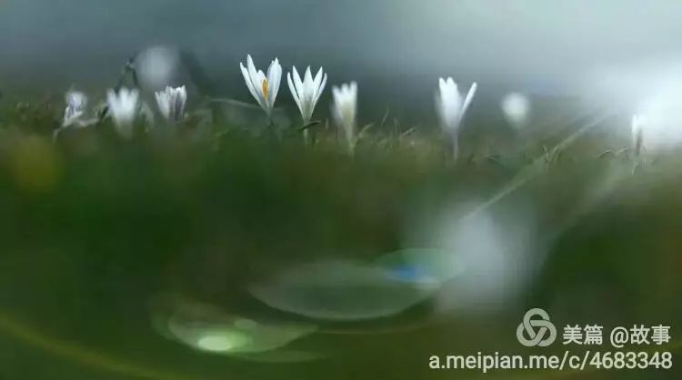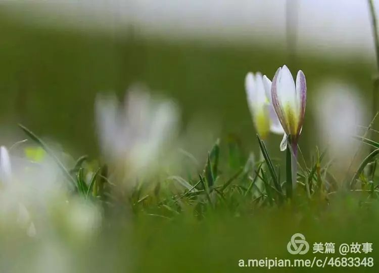 白番红花,在初春开放,山顶的积雪还没融化,白番红花和顶冰花便迎着寒风绽放了。