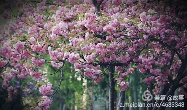 晚樱婆娑起舞,缀满花朵的枝条舞动着春光,同时也舞动着人们浪漫的情怀。