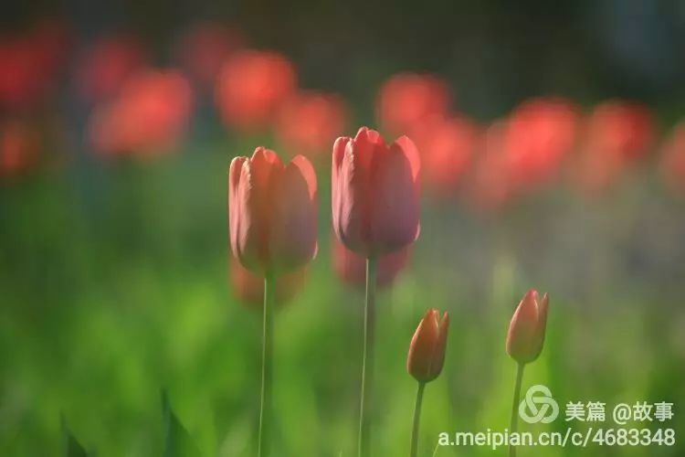 初夏的清晨将晨曦的光辉和飘逸的花朵收入镜头,把夏日红色浪漫载入时光相册。