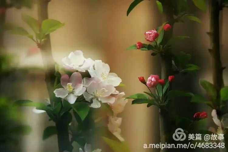 开在雨中的苹果花,浸满春雨,莹润丰盈。