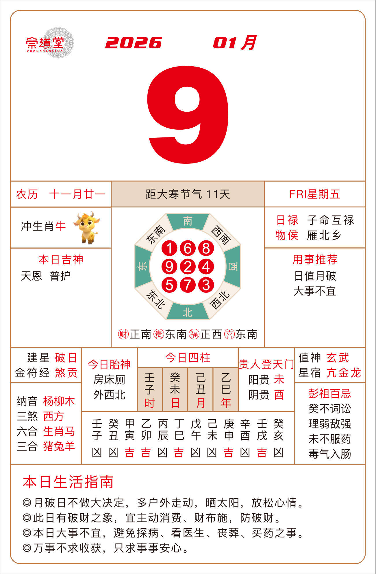 2026年1月11日 农历十一月廿三 乙酉日 冲兔