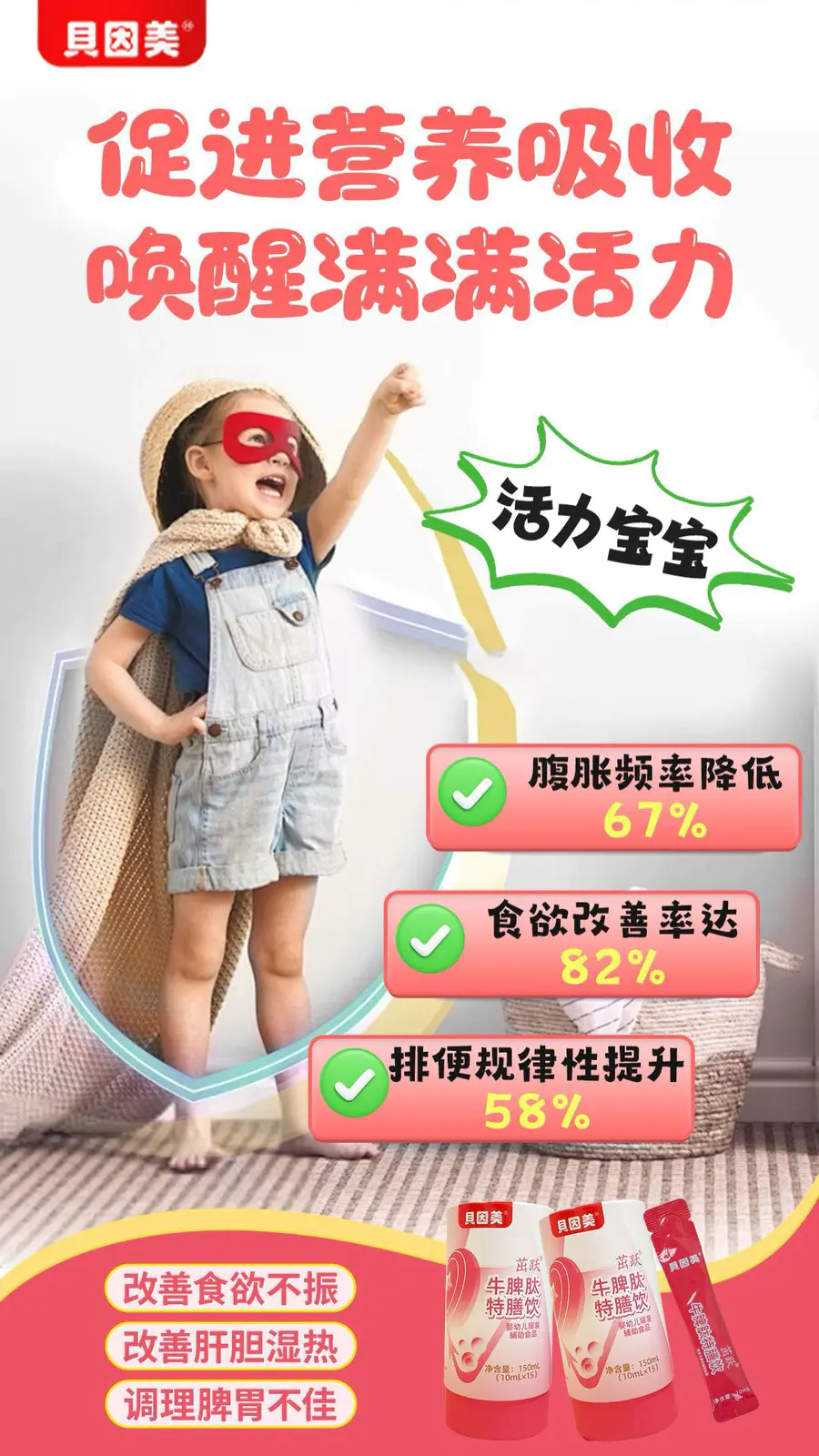 🔥高温抑制消化酶?🚨娃积食+闹肚预警!🛎一消二清三健脾📝牛脾肽富含多种活性成分✅有效促进脾胃运化💦激活夏日干饭力!