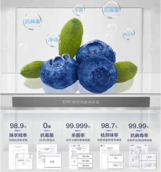 EPP超净系统:一般用在海尔的高端机型上,利用高压静电产生离子群和臭氧,杀菌率达99.999%,除异味98.7%,抑制霉菌28天0生长。集杀菌、净味、抗菌功能功能为一体。