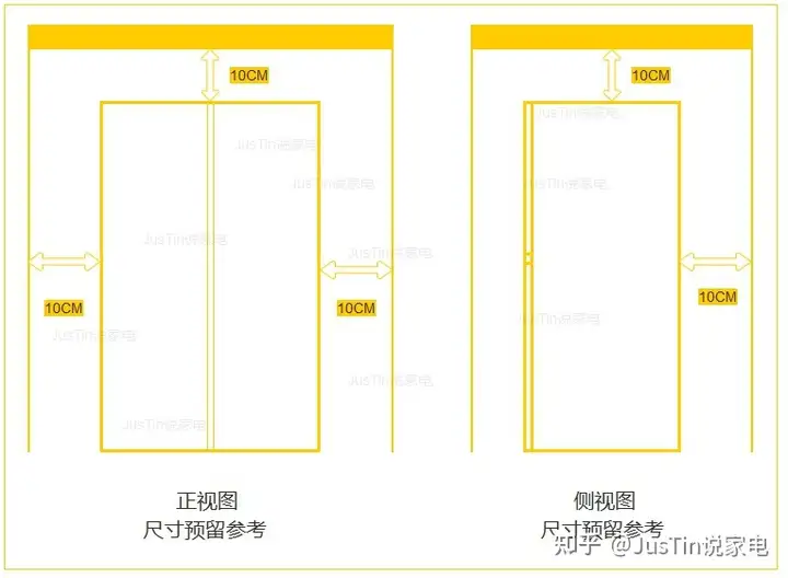 上图是常规冰箱的预算位置参考图,自己制作勿喷;另外有部分高端嵌入式冰箱,可以在背面或者顶部散热的,左右两侧的预留空间可以缩小些。