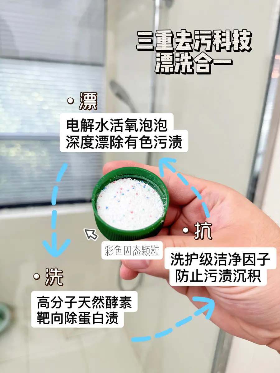 这一瓶就等于爆炸盐+洗衣液的结合体👍🏻 污渍多的可以单独泡开,日常养护衣服的直接倒进洗衣机机洗都是ok的❗