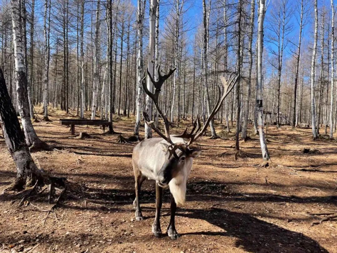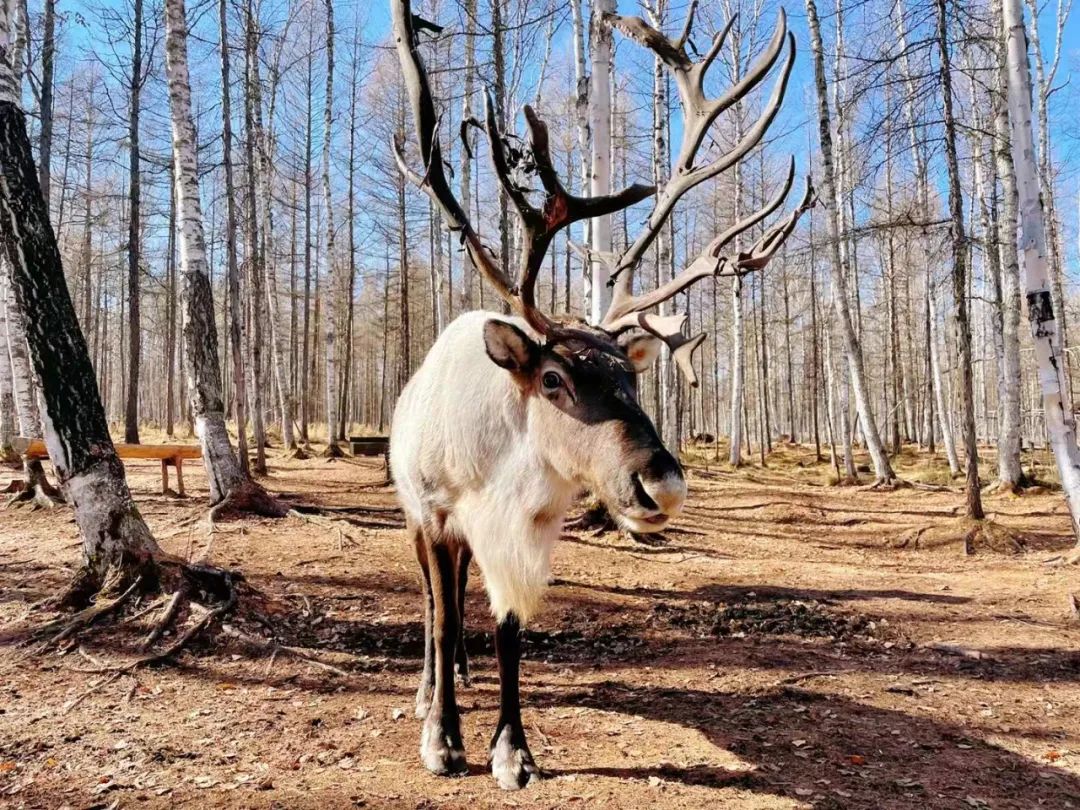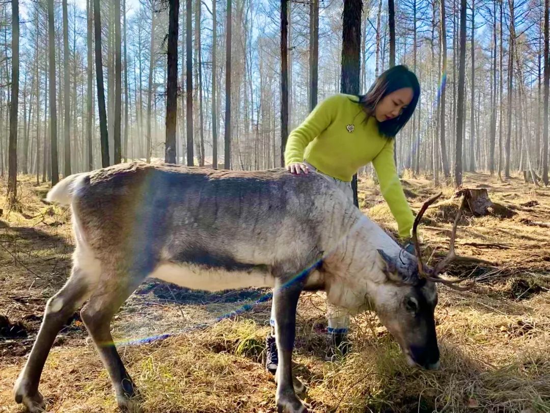 它的味道有点像小时候喝的那种甜味汽水,但有更多的气体,跟碳酸饮料很像但没有碳酸饮料那么冲鼻。口感也很顺滑,喝下去之后人会觉得很舒服,生理性的舒服。因为它味道太特别了,特别到它能把你嘴里其他食物的味道全部盖住,喝下去之后你甚至能清楚感知到它是如何从你的嘴里落到你的胃里,像刺剑一样,精准,并且干净利落。“开路锋”,没由来的,每次喝大窑我都想到这个词,没有薄荷水的味道但具备了薄荷水的功效。(友情提示:喝冰的)我第一次喝大窑就喜欢上了,后来每顿饭都喝,到最后弄得我都有点不好意思了,因为我每顿饭都像个水牛一样抱着大窑吨吨吨......这里再友情提示想要去东北的朋友,点菜的时候一定要含蓄一点。东北菜实在是太实诚了,碗大肉又多,稍不注意就会积食(不是)。下面这盘猪蹄,直接让我重新定义“吃猪蹄”这三个字。我是成都人,除了卤菜和红烧,猪蹄在我心里约等于“老妈蹄花汤”,清姐带我去吃猪蹄的时候,我满脑子都是粉嫩猪蹄、海带和白芸豆,当这盘乘了 20 个酱猪蹄端上桌时,我举筷四看笑脸,竟无语凝噎。还是很好吃的!但吃多了会很腻,小二哥跟我说这算是东北的下酒菜。敖鲁古雅是鄂温克族居住的部落,位于呼伦贝尔市根河市最北部的敖鲁古雅河畔,根河市西郊,是鄂温克族最远也是最神秘的一个支系居住的地方。敖鲁古雅,也称驯鹿鄂温克人,意为杨树林茂盛的地方。17 世纪中叶,驯鹿鄂温克人从贝加尔湖流域一带,游猎迁徙到大兴安岭密林中,靠狩猎和饲养驯鹿为生。他们被称为“使鹿部落”和“中国最后的狩猎部落”,也是我国境内迄今唯一保存“驯鹿文化”的民族。最后一代纯正血统的驯鹿鄂温克人仅有 30 余人,世世代代赖以生存的驯鹿只剩 600 余头,极少一部分驯鹿鄂温克人仍然保留着较为原始、自然的生产生活方式。现在大部分的敖鲁古雅鄂温克人都搬到城里居住,为了保障这个民族的生存繁衍,政府给他们提供了非常优渥的生活条件。在我们进入原始森林之前,会去鄂温克人在城里的居住地参观,每家每户都是很漂亮的独栋房子,外观上还保留了鄂温克傍“林”而居的特点,屋顶像树的枝桠向外伸展。原始森林里全部都是白桦林,十一国庆期间对呼伦贝尔来说已经是晚秋,树上的叶子已经掉得差不多,我走在路上,看着树干笔直朝天的白桦林,看到被白桦林簇拥着的一线天,听到脚下枯叶和树枝被踩碎的声音,回顾四周,又看到队员们连成一串在朝前走。很自然的,我想到海明威《在异乡》的开头:深秋,战争不断进行着,但我们再也不去打仗了。米兰的深秋冷飕飕的,天黑得很早。转眼间华灯初上,沿街看看橱窗很惬意。店门外挂着许多野味:雪花洒在狐狸的卷毛上,寒风吹起蓬松的尾巴;掏空内脏的僵硬的鹿沉甸甸地吊着;一串串小鸟在风中飘摇,羽毛翻舞着。这是一个很冷的秋天,风从山岗上吹来。到了驯鹿部落后,陪一个小朋友去看鹿。惊喜得很,驯鹿实在太温顺,我摸了摸它的脸,然后把手放到它侧边的肚子上,感受它的呼吸。这种感觉相当奇妙,像我第一次养狗的时候,我经常半夜出去摸它的肚子,感受它呼吸的起伏,这种感觉一直很奇妙,难以言说,生命这个词汇在这个瞬间突然变得如此具体。当我把手放在驯鹿的肚皮上时感受到的也是这一点,万物真是有灵。在我们去原始森林的前一天,根河地区刚好下过大雪,路上有很多积水塘,也比较湿滑。在过一个积水塘时,我一脚踩进了水里,水没过了鞋面和脚踝,我当时觉得完了,湿鞋湿脚是一件很让人难受的事。但我把脚拔出来,甩了两下,鞋面马上就没有水渍,脚也没有湿。我们在出发前给队员发的出团通知书里提到了要到防水鞋,但有一部分队员没有带,在通过这几个积水塘的后他们的鞋都湿了。鞋子打湿,随后脚打湿,导致失温,在户外是一件非常危险的事,80% 以上的户外伤亡事件都是因为失温。所以在选择户外装备上,保暖的装备一定要选择好。徒步中国的装备商城有很多大牌正品,并且都比官网便宜很多,欢迎大家去看看。20 公里徒步,对户外新手来说是不小的挑战。但好的风景就像那个《寻隐者不遇》里找不到的童子仙师,藏在山里的“云深不知处”。