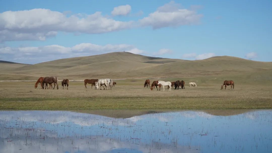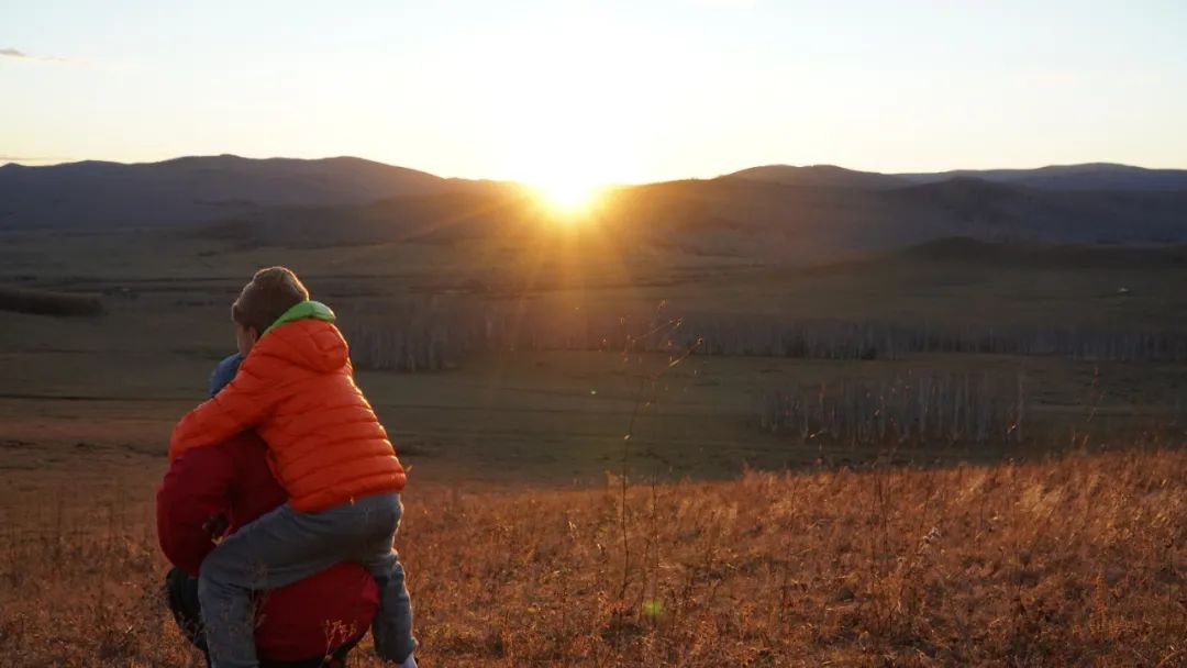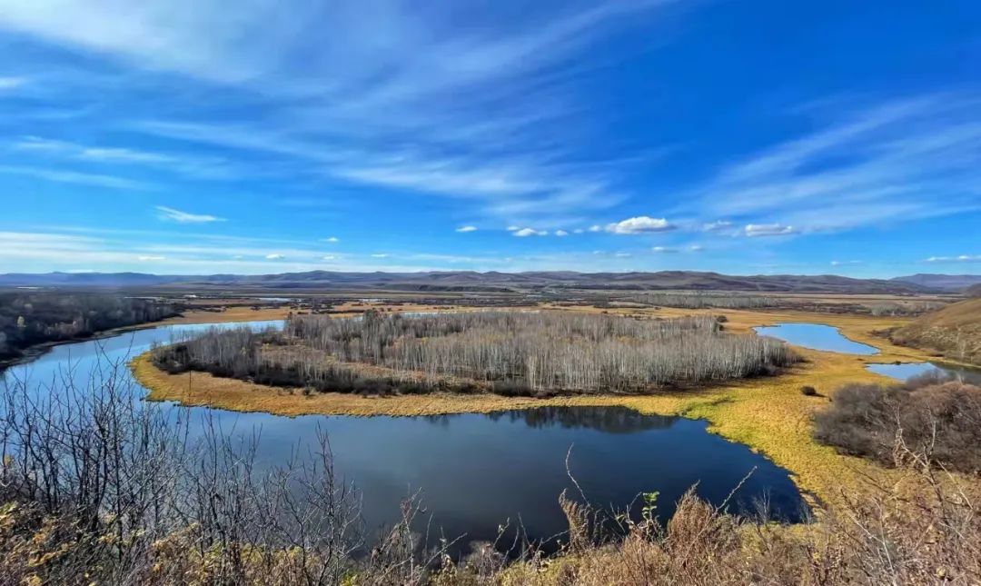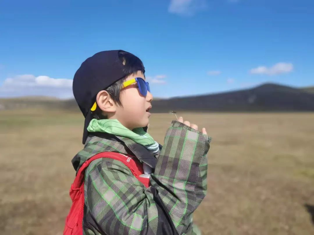最后是耳朵,我是南方人,这一辈子在北方待过的日子短暂到可以用天来计数,在南方人认知里的冬天,脖子以上的身体器官是不需要保暖措施的,但海拉尔凌冽的冷空气,用不到五分钟的时间就彻底教训了我对冬天的傲慢,“我的耳朵要冻掉了”这句话开始在我脑子里循环播放。不过之后的几天行程天气都非常好,每天都是晴天。有队员从最开始穿三层裤子(保暖裤+毛裤+冲锋裤)到最后只穿一条瑜伽裤徒步。徒步从行程的第二天开始,秋季的草原非常美,队员们徒步的兴致一直很高。到了 5 公里徒步的终点时都没有一个人上车,很多人直接走到了莫日格勒河的观景台,距离大概 15 公里。生物存在的种类和数量是检验一个地区的环境质量标准,呼伦贝尔的草原上就有很多小动物,小朋友们经常发现各种各样的小动物,胆大的还用手去捉。