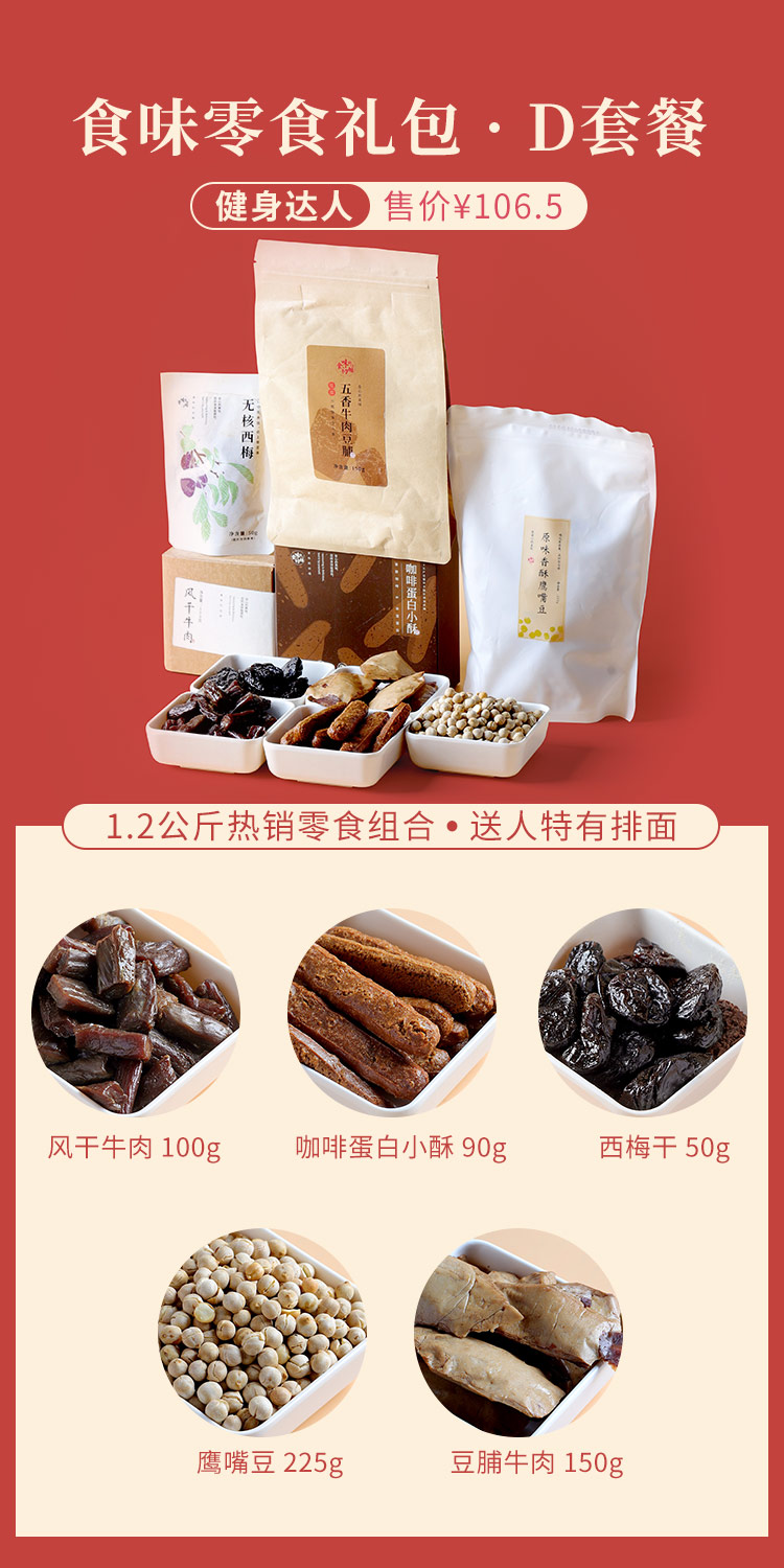 这款礼包为健身达人们准备了5款热量低的零食哦,好吃不胖,低脂高蛋白,增肌好搭档~