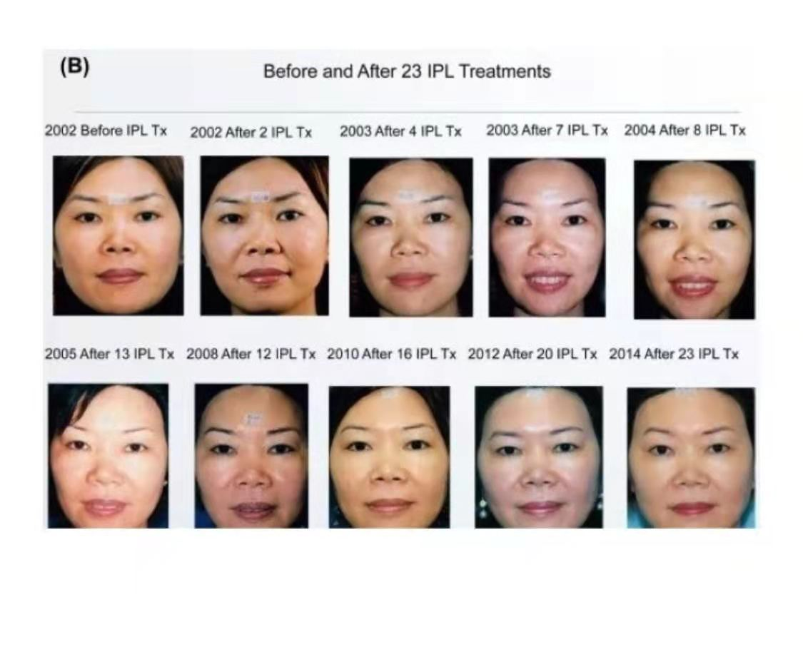 关于它的抗衰功能,虽然不及热玛吉立竿见影,但咱们中国有个教授出了本书,里面就提到160例人坚持10年做光子,十年前后无明显变化。
