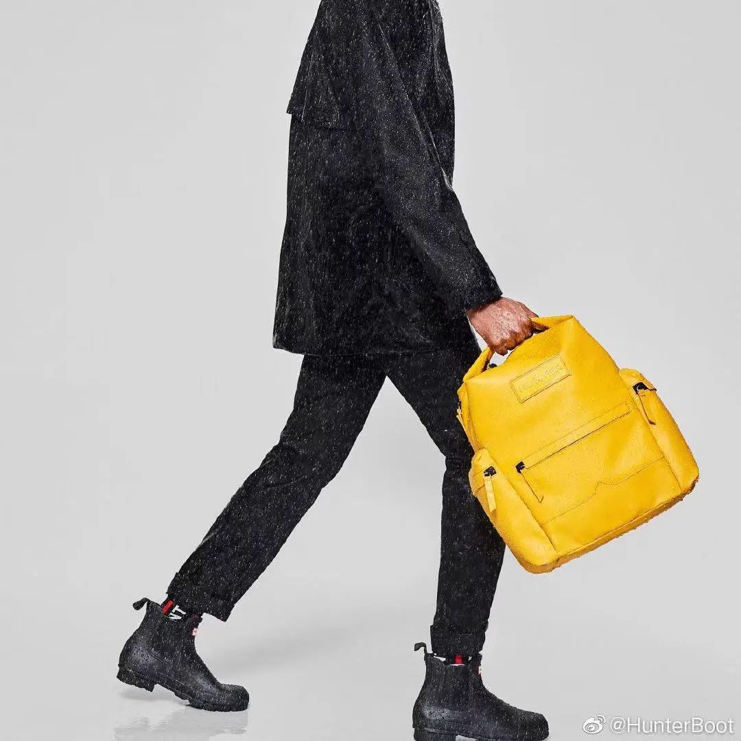 HUNTER的双肩包于我有“救命之恩”,去年我去富士音乐节遇到龙王发大水,我们站在暴雨里听Sia演唱会,从头到脚被雨打得没脾气,走的时候雨鞋已经成了泡脚桶,但幸亏带了这个防水包,电脑、相机、证件毫发无损。
