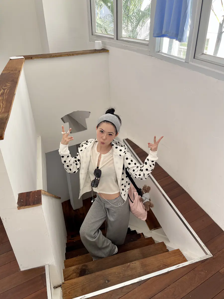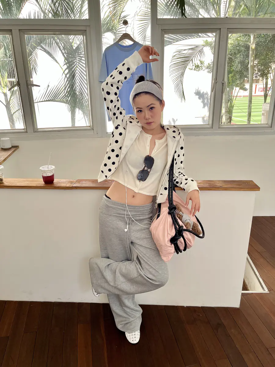 新品上身 |波点上衣配运动裤,轻松打造家居休闲风。 🌟