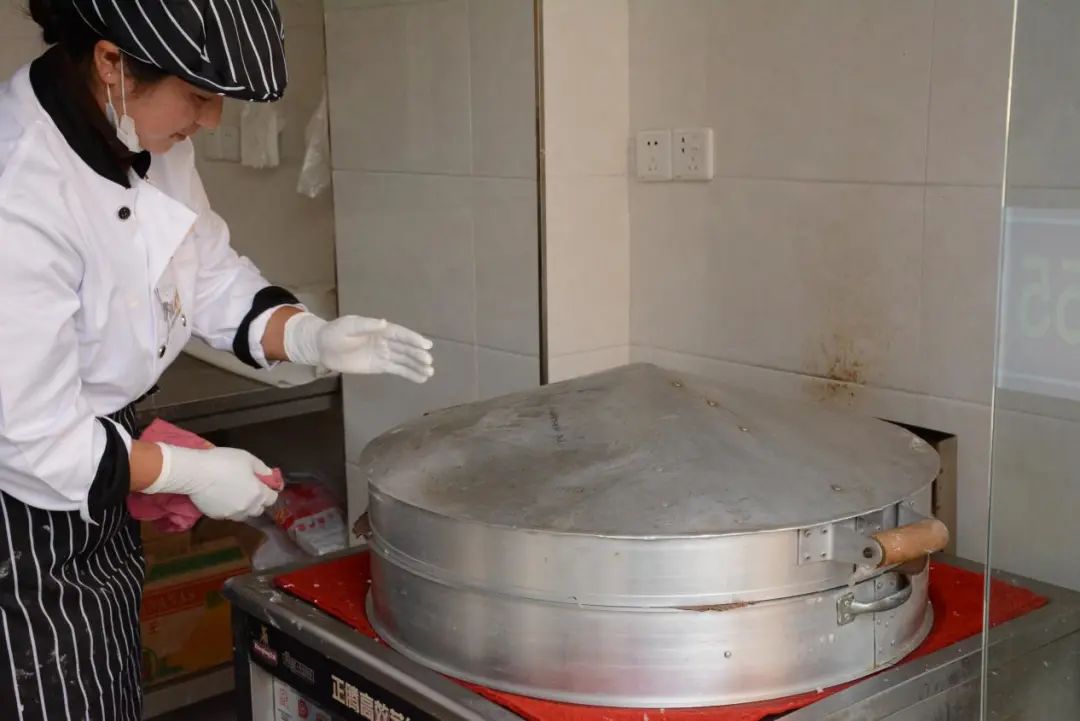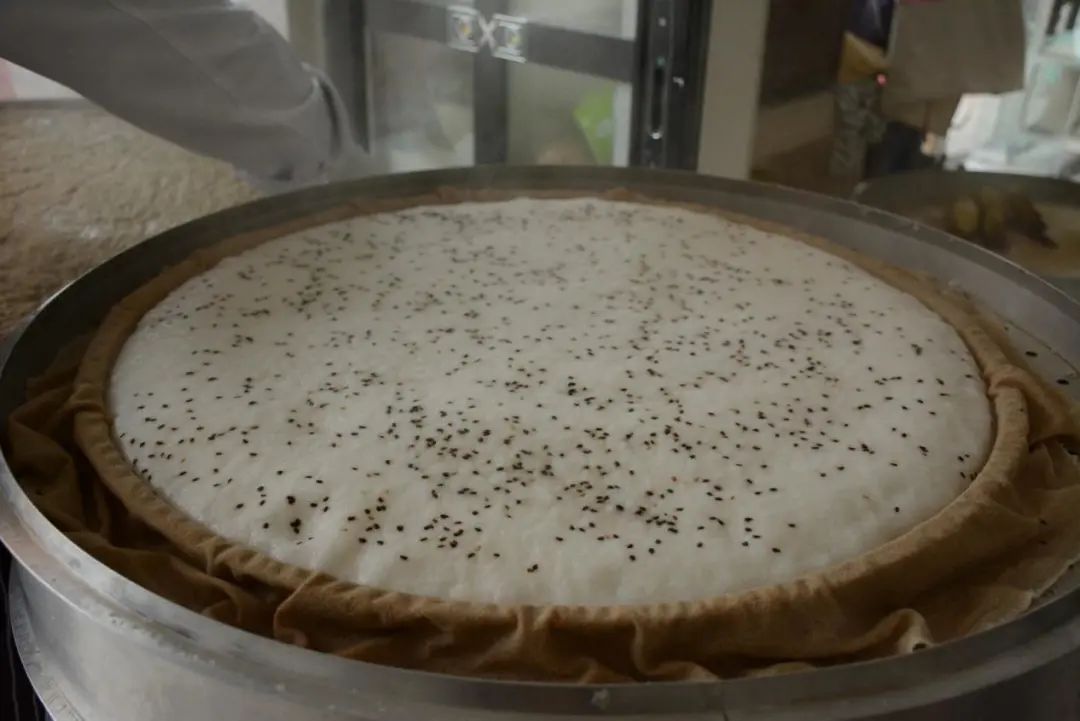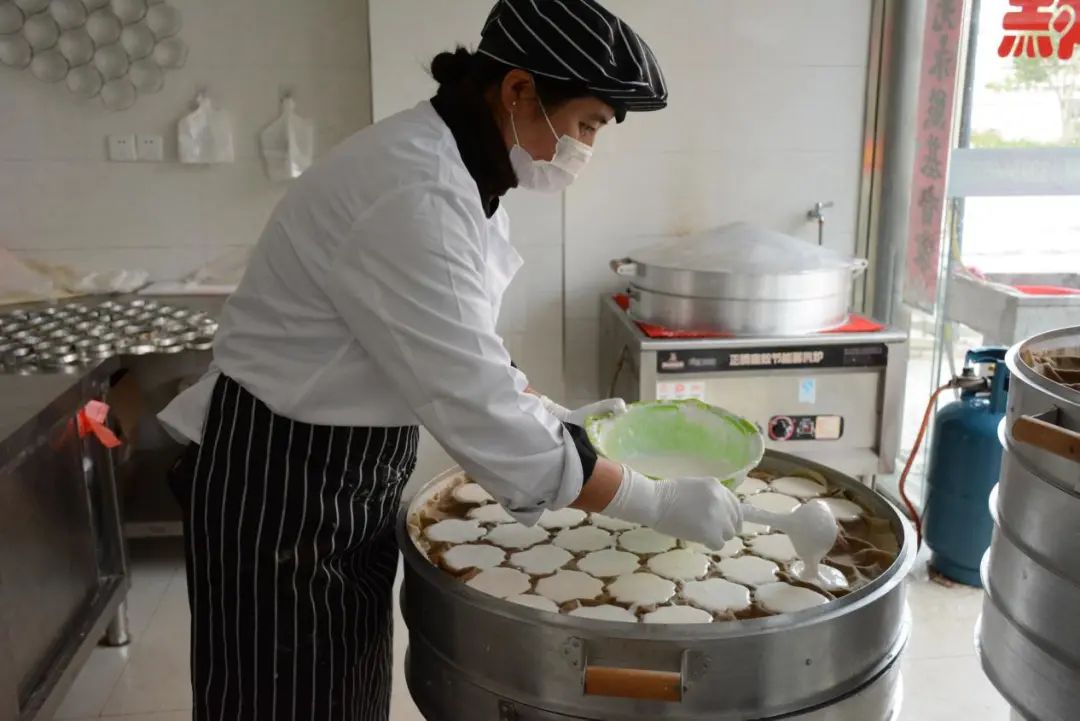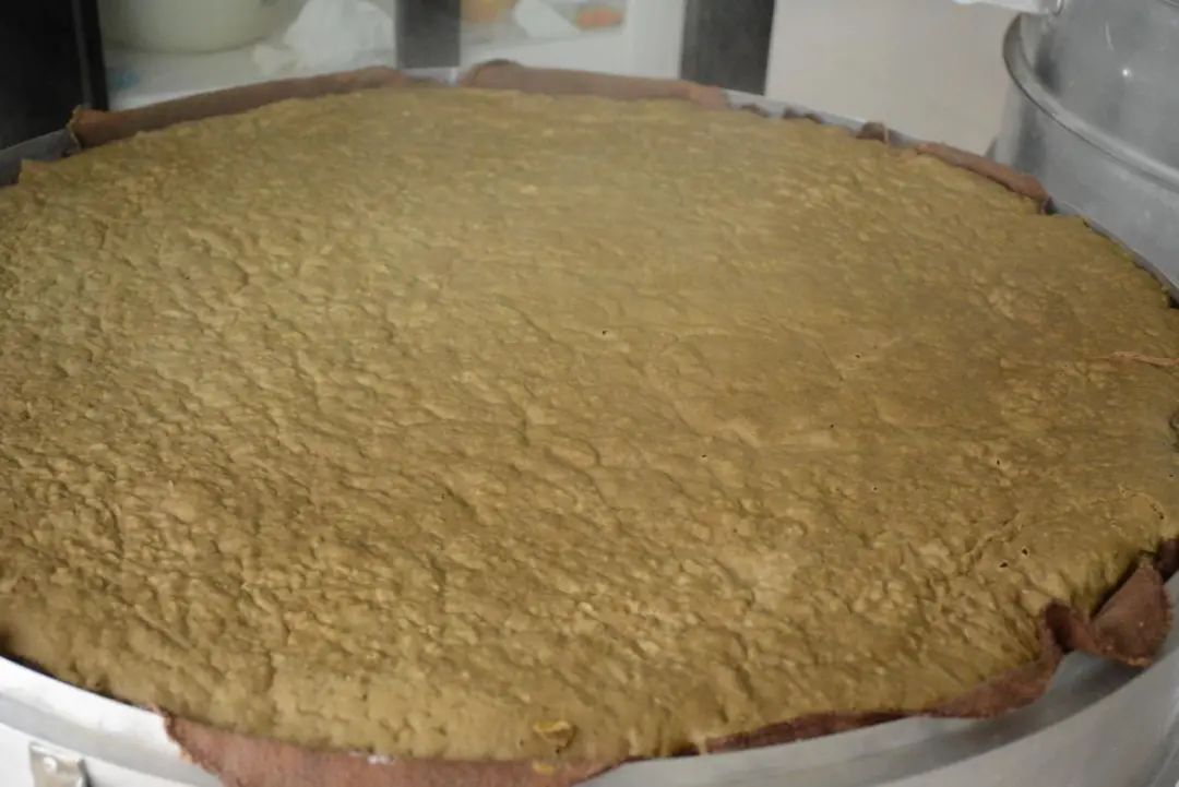 再将发酵好的米浆倒入蒸笼屉里,开火蒸制,这个过程大概需要20分钟左右。