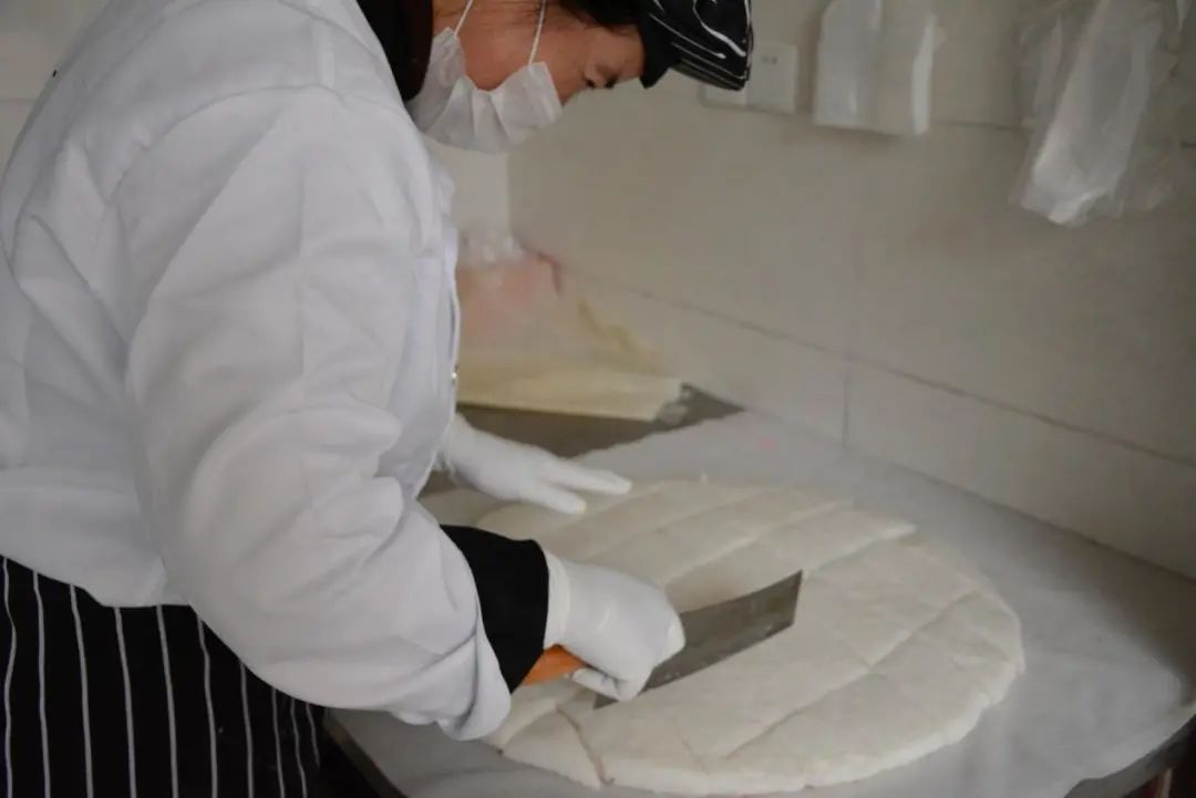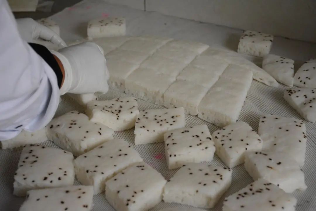 蒸好的发糕稍微放着凉一会,再进行切块。黄大姐说刚蒸出来发糕入口特别松软香甜,而且吃多了也不上火。由于是酒糟发酵进行蒸制的所以孕妇小孩都可以吃,为了调味只加了一点白糖。吃起来香甜软糯,入口绵密。咬一口可以看到发糕里面有好多好多的小孔。