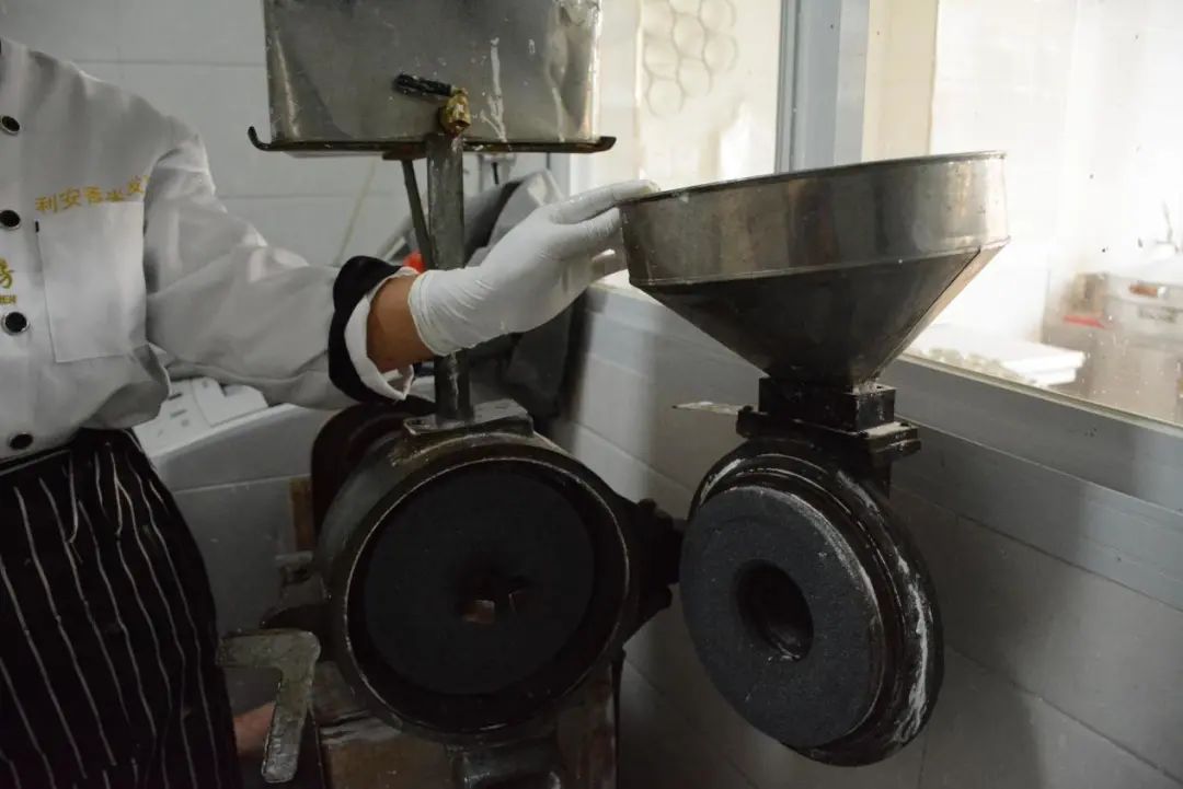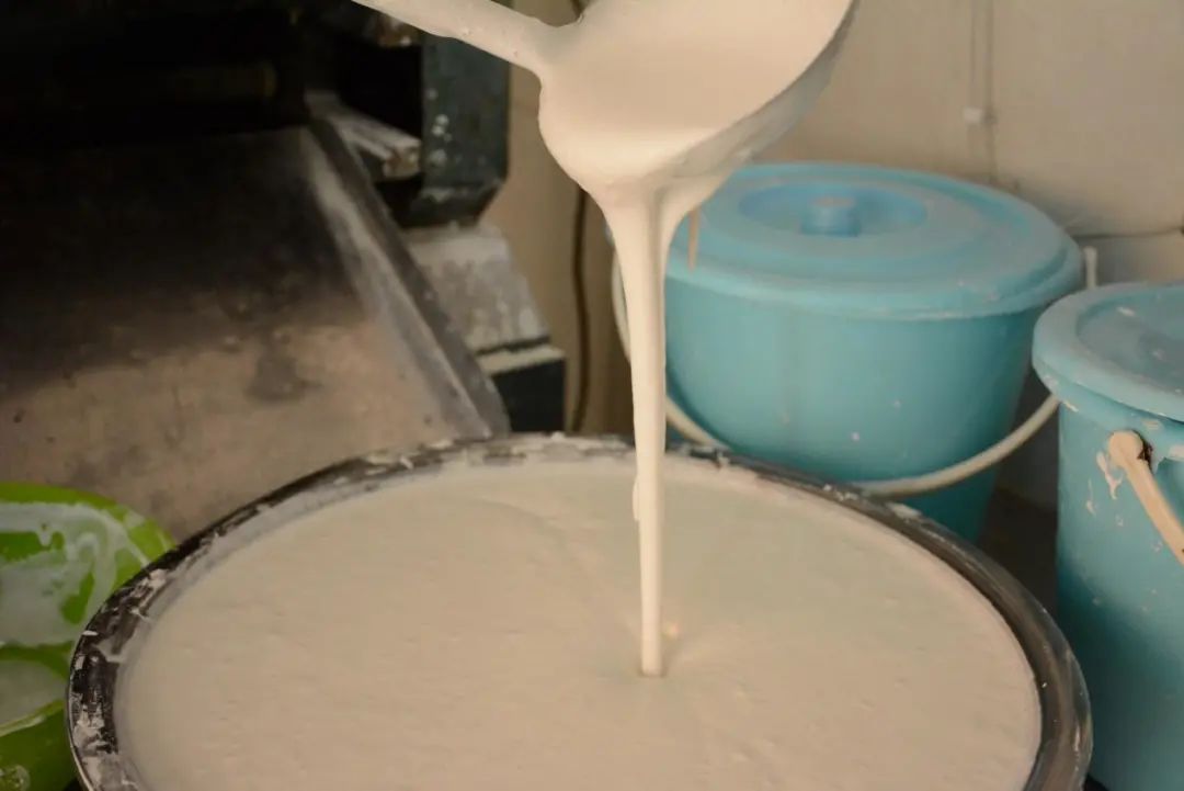 清晨四点,黄大姐就把大米倒入磨粉机进行磨浆。磨好的米浆加入之前就做好的酒糟、少量白糖,静置发酵10个小时左右。