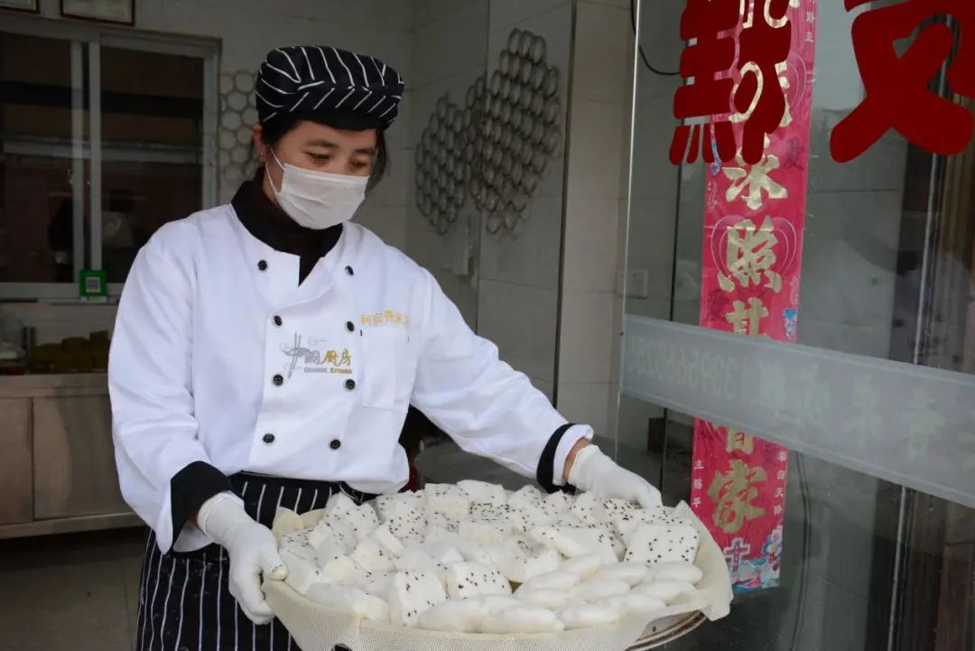 黄大姐的发糕店就开在东至县泥溪镇隐东小区里,据大姐说她用酒糟制作发糕已经有9年的时间了。前几年一直都是骑着电动车街头巷尾的叫卖,如今交通网络也发达了,她的发糕让更多的人知道,也卖的更远了。