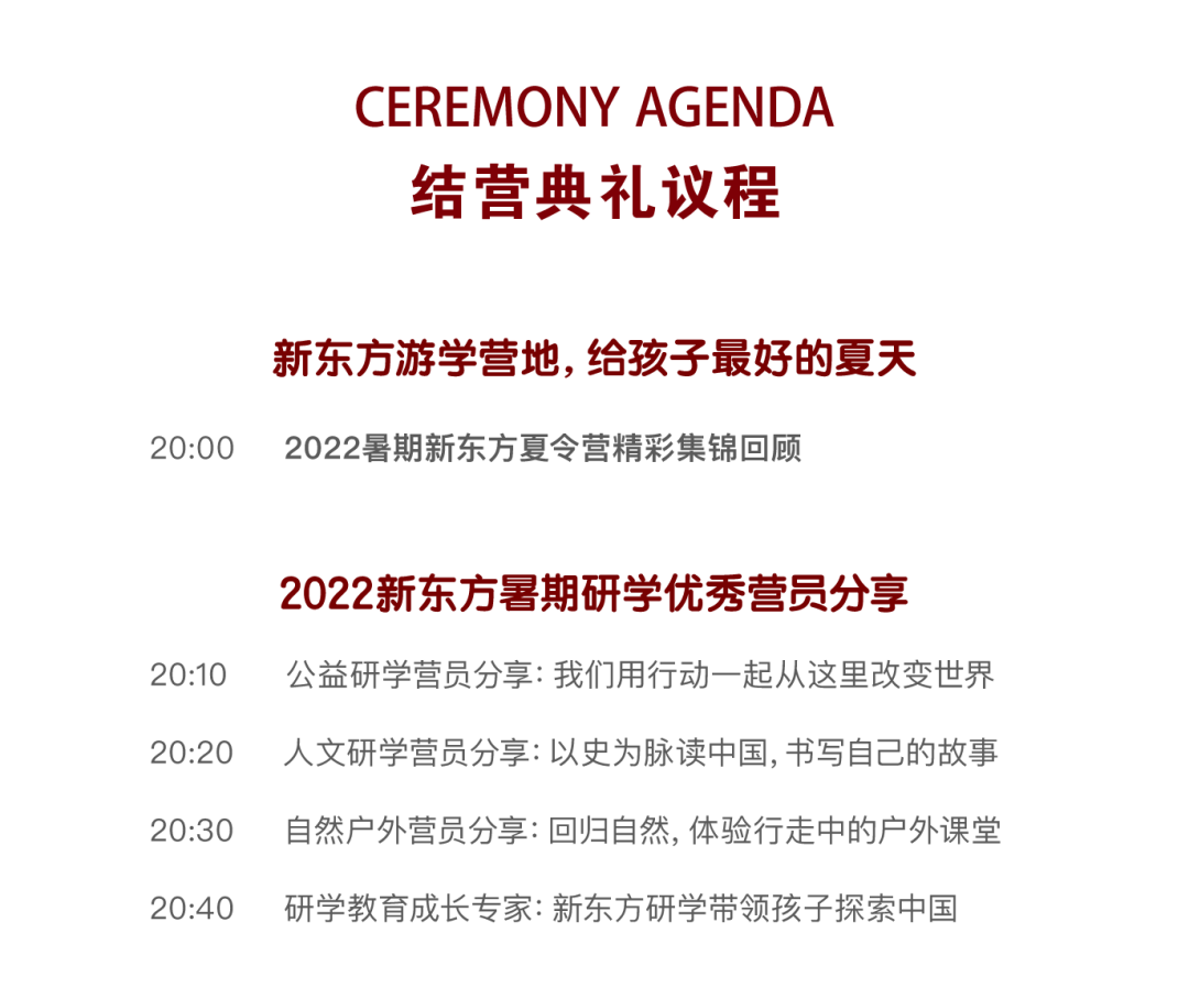 新东方星光奥斯卡结营典礼是我们为营员们专属打造的国际化舞台,让他们跟随新东方一起探索中国,发现祖国之美,分享属于自己的中国故事。