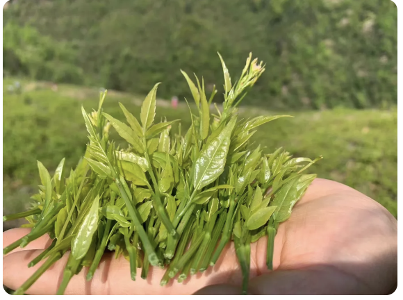 雨天不采、不到季节不采。胡蓉她只在特定时间,天晴好时,才能手工采摘专属莓茶园的35cm嫩芽尖制作[蓉儿家莓茶]。采摘回来的莓茶芽尖还必须进行精心挑选,剔去不符合标准的芽叶,保持芽叶匀整一致胡蓉说,10斤鲜芽叶,最后才能制作1斤成品干茶。胡蓉她传承土家贡茶秘制方法,首创21道工艺,打造[蓉儿家莓茶]色、香、味、形四位一体的上好品质。