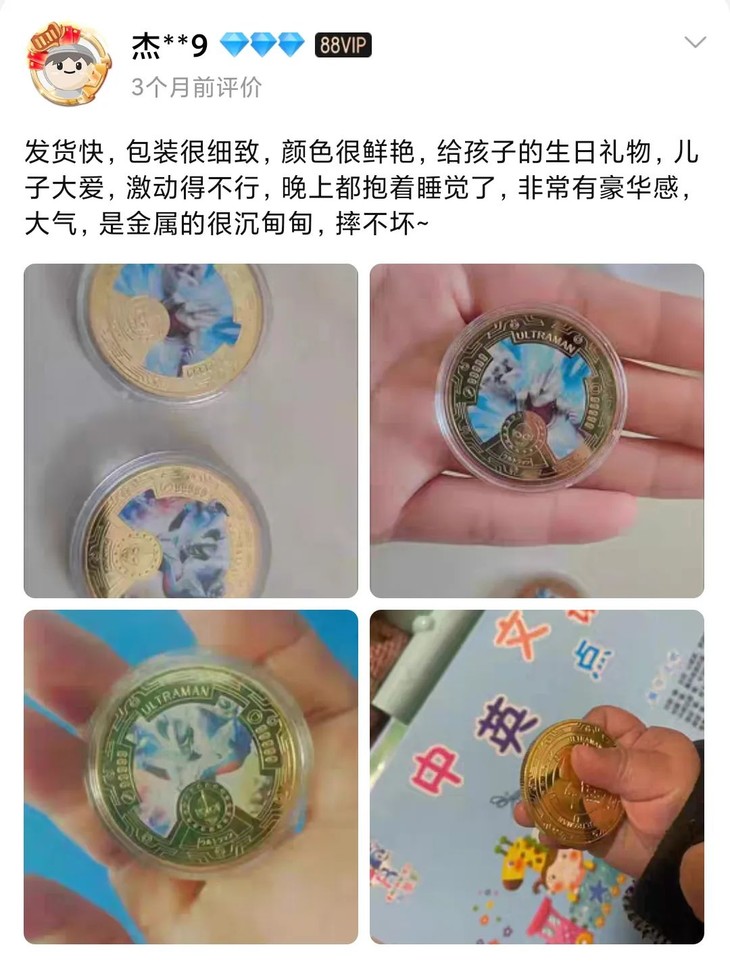 孩子最近上网课、写作业都很积极主动,所以我专门买了他喜欢的奥特曼当礼物。这套纪念币拿在手上闪闪的,做工特细致,孩子简直爱死它啦哈哈哈哈哈~