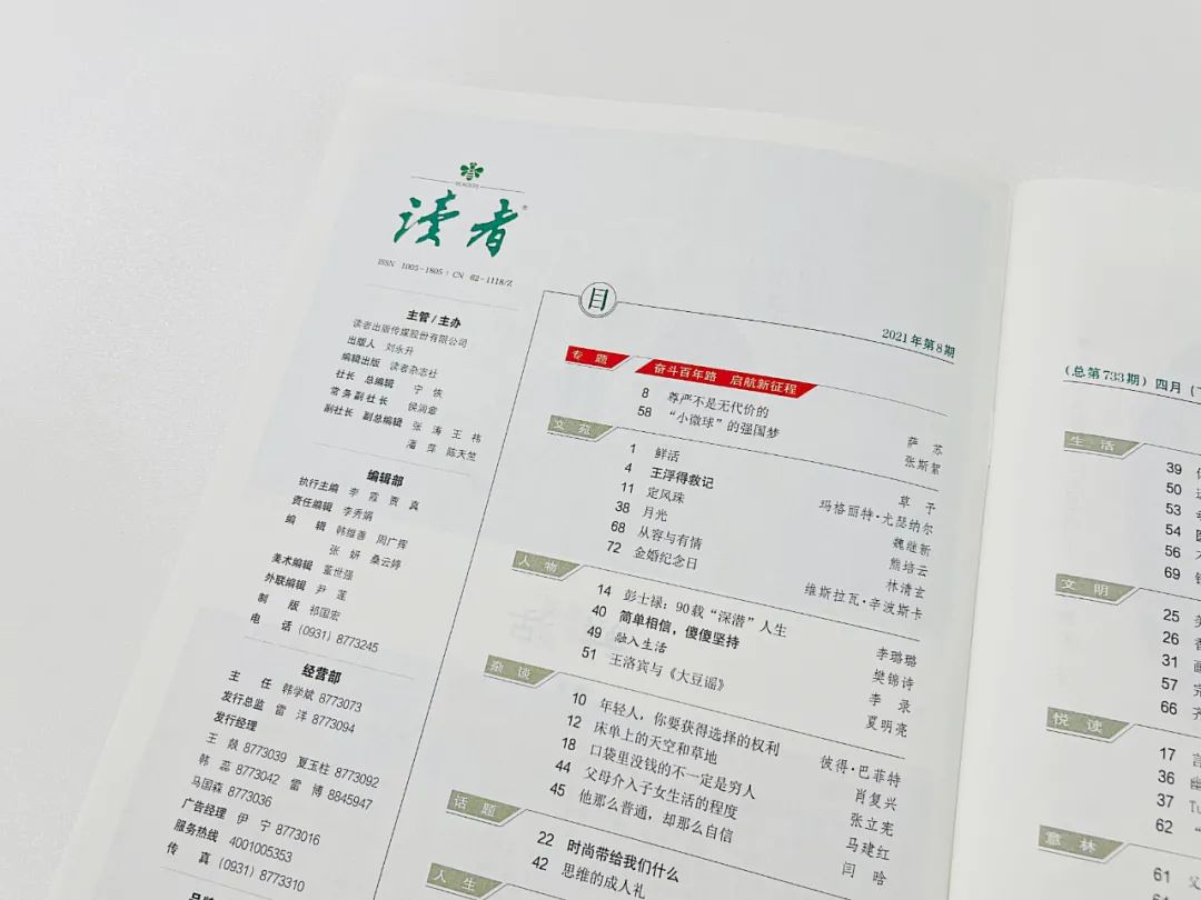 “《读者》有一种‘神奇能力’,任何适合随手抽出一本,就能沉浸在阅读中,让人阴霾一扫,安静下来。”