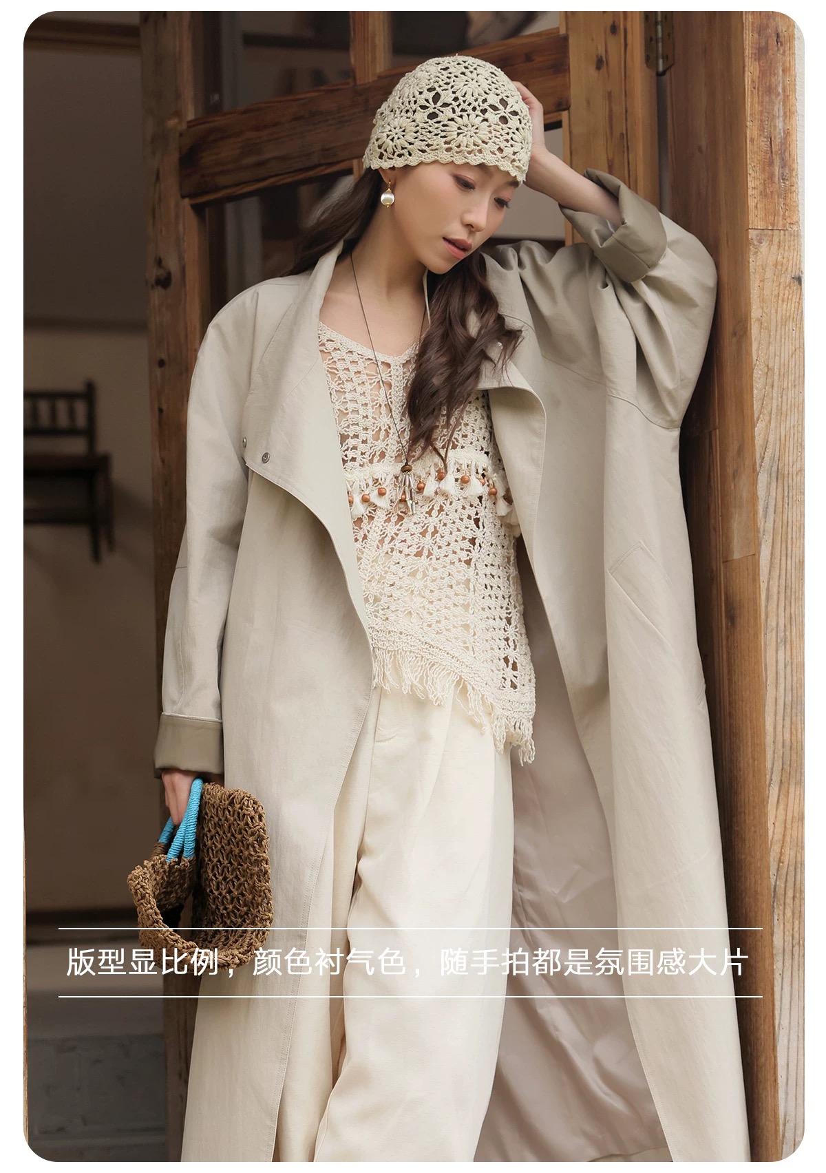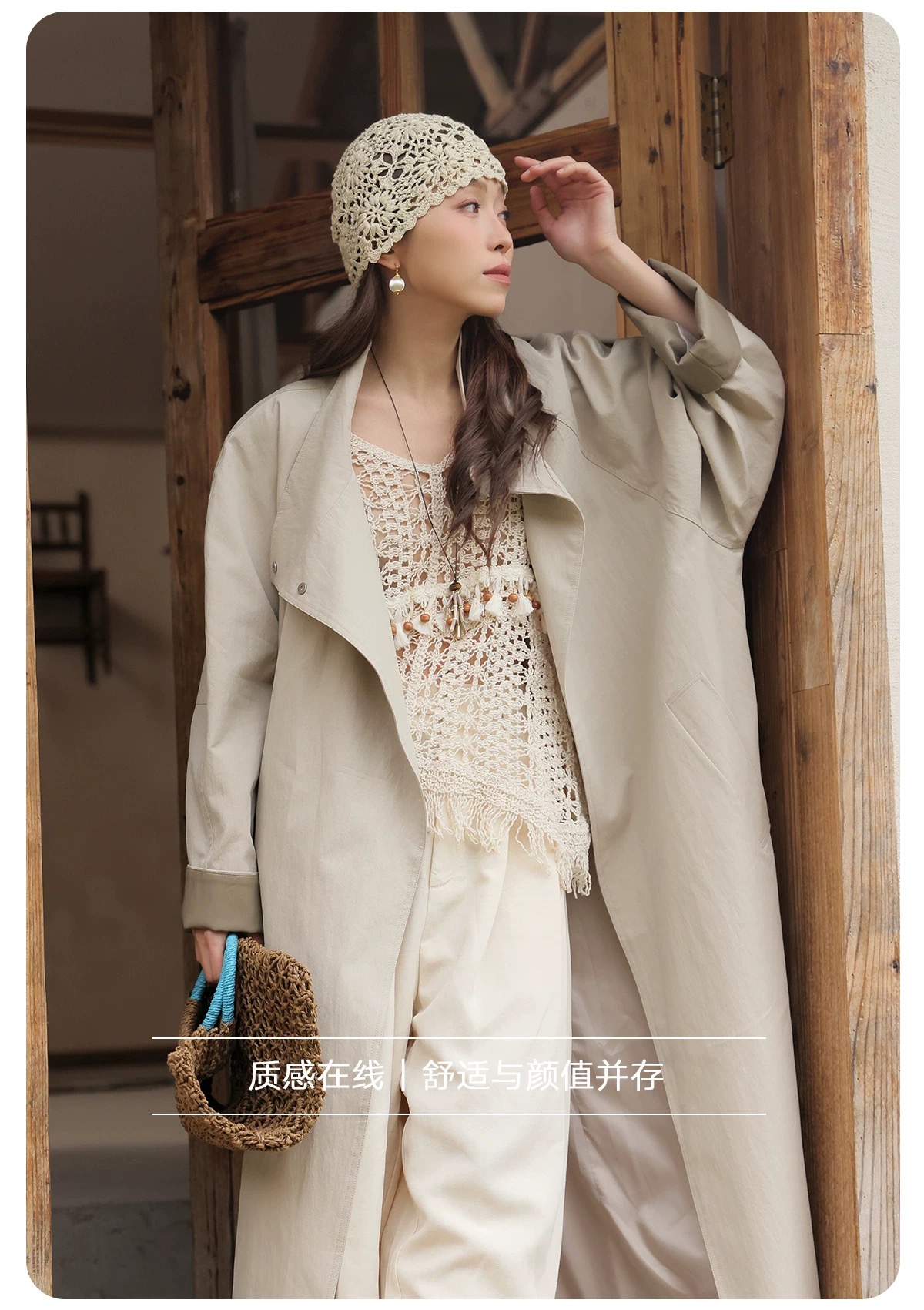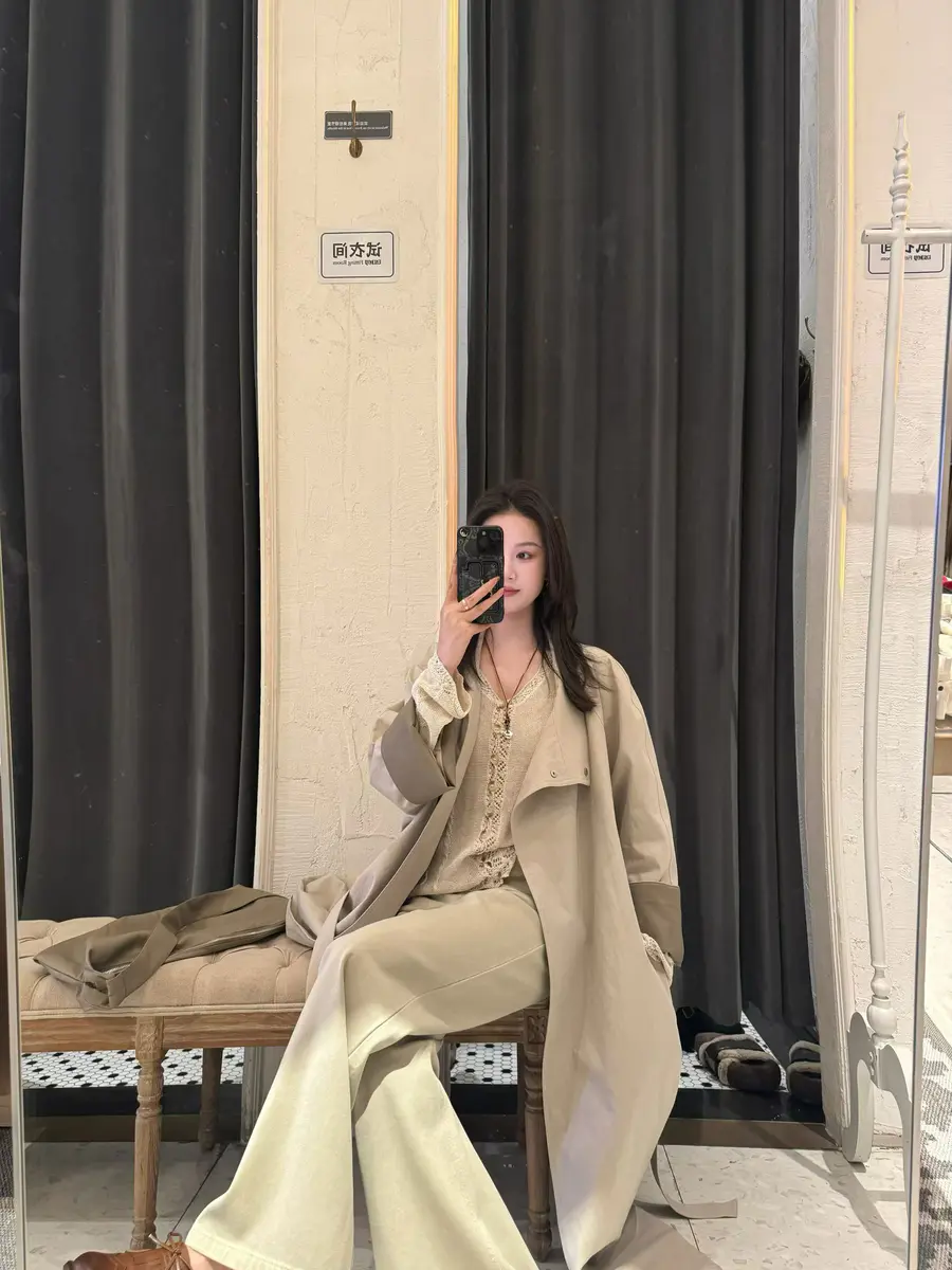 拼皮长款风衣,卡其色铺陈春日底色