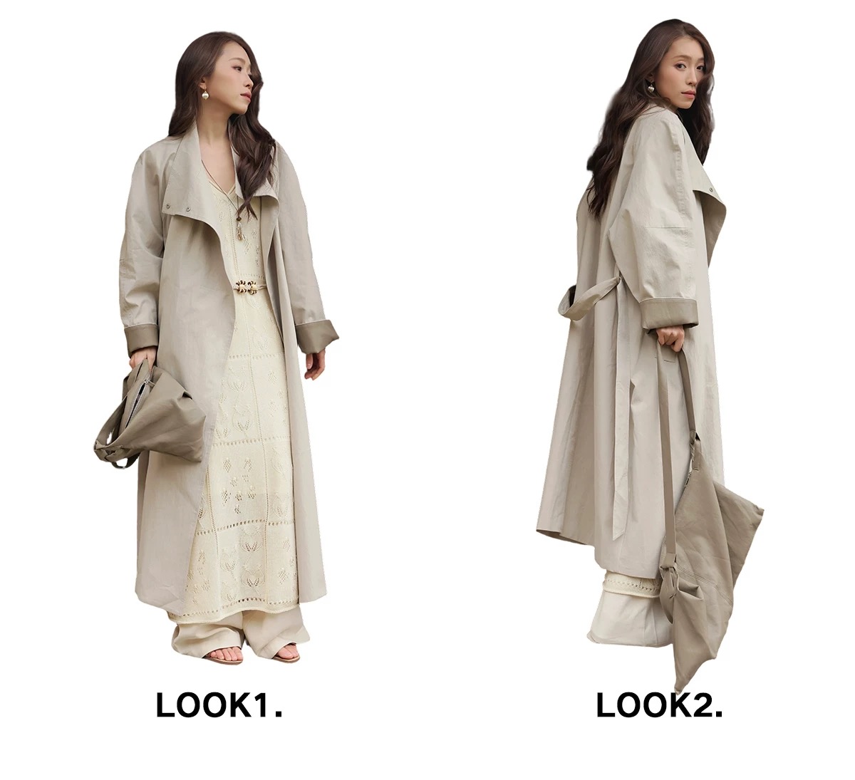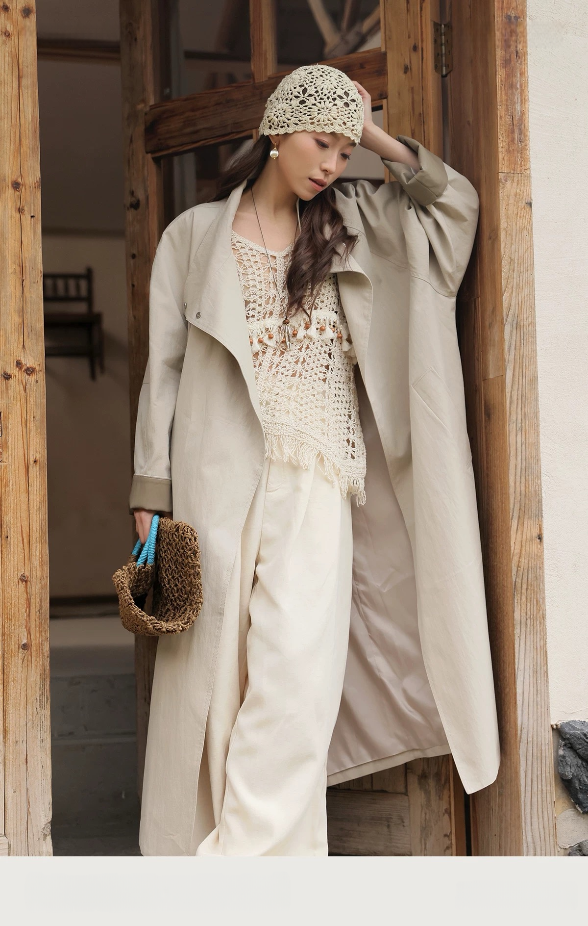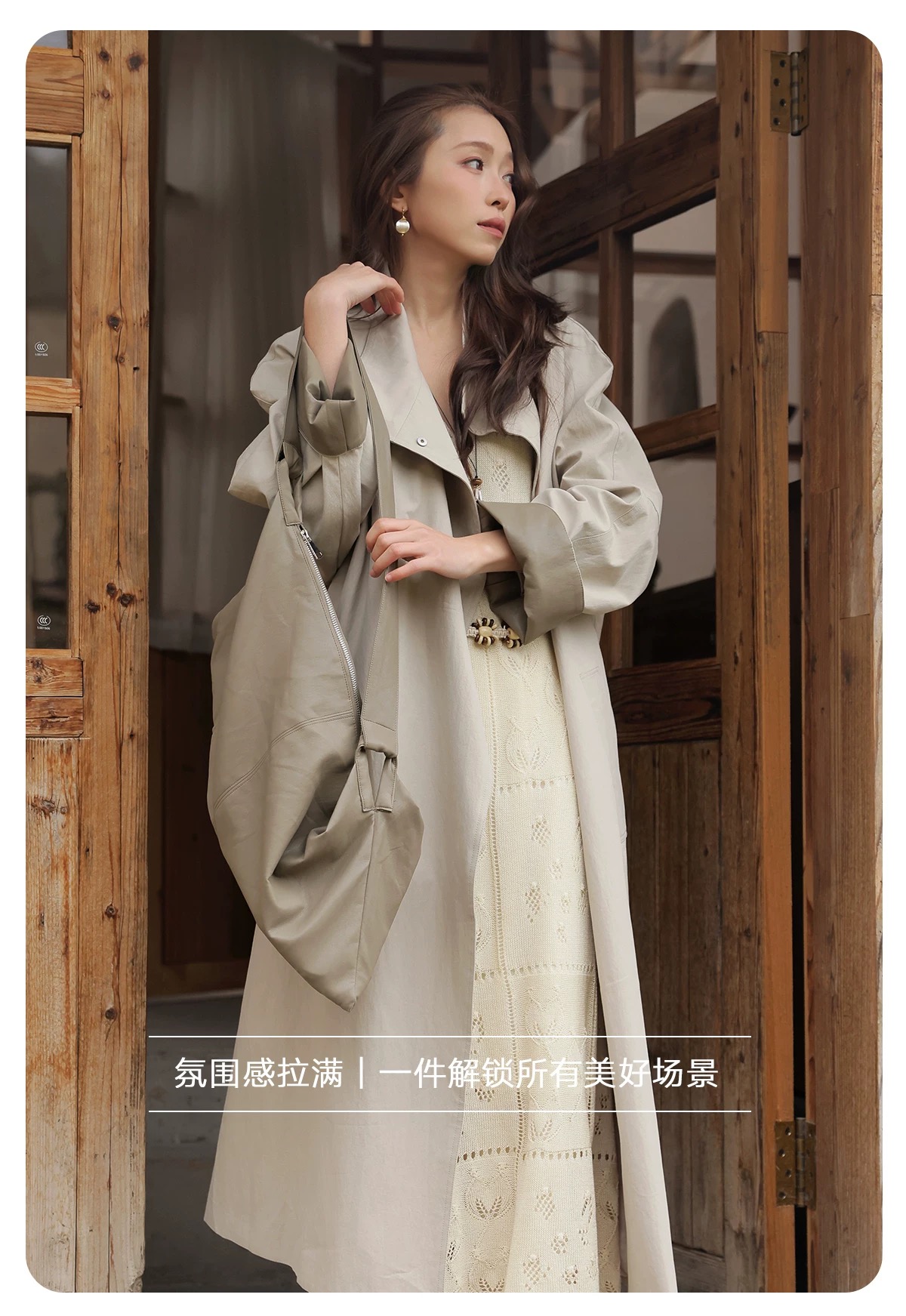 拼皮长款风衣,卡其色铺陈春日底色