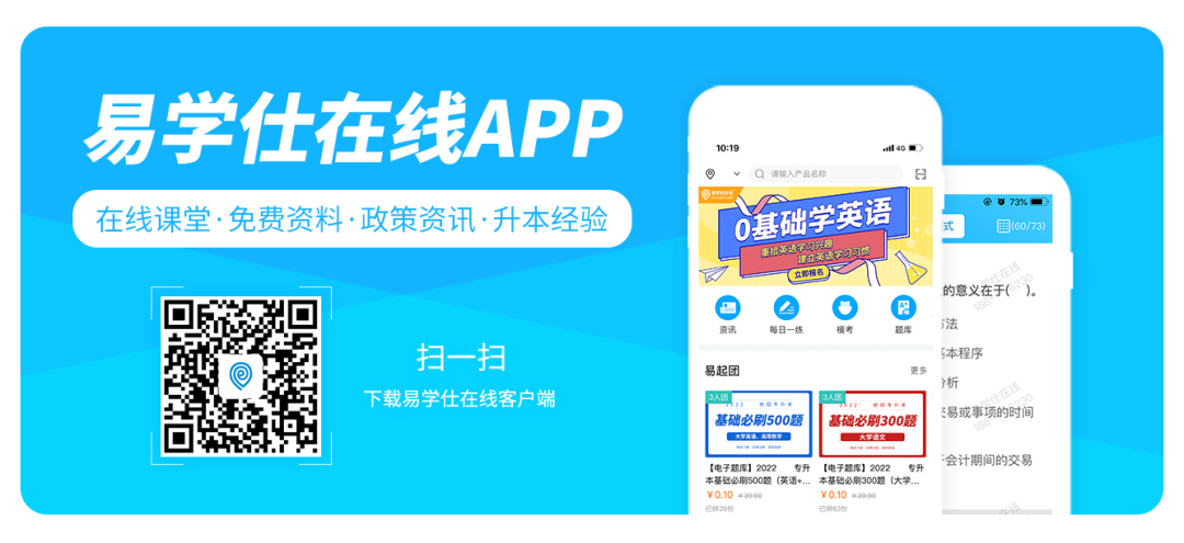 现在各省2021年专升本考试都已经进入尾声,易学仕在线特地为2022和2023年升本人带来【专升本英语单词打卡】活动,每周一至周五,每日20个单词并配有独家视频讲解,带你轻松掌握升本必备词汇!