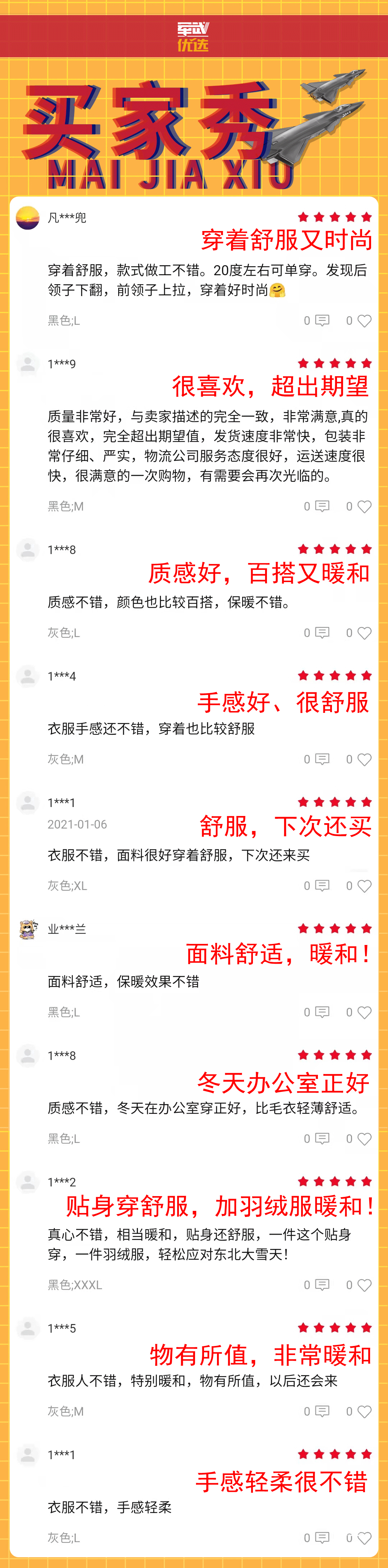 推荐理由:抓绒衣以高度吸湿排汗、保暖轻盈等特点,成为了现在的秋冬新宠!无论是专业人士还是户外大牌,对它都是情有独钟!这个秋天,有它一件就够了,好看还耐穿,即使到了冬天,套一件外套也能暖暖的!