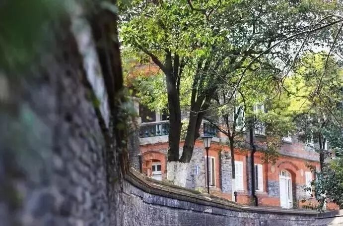 五栋建筑依山而建,高低不一错落有致,砖木结构端庄典雅,带有长廊式的阳台,无论站在哪一处都能拥有很好的视角,向北还可以望见长江。