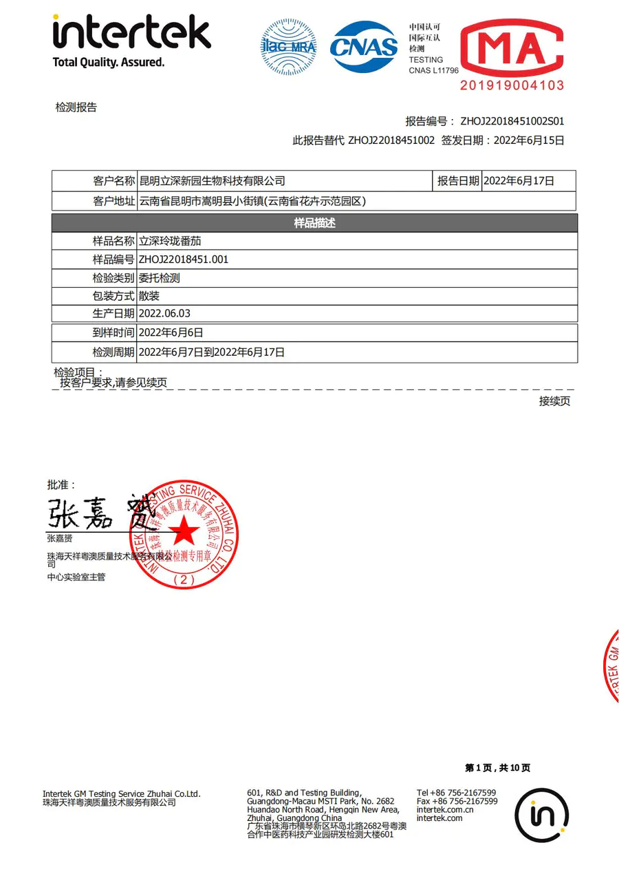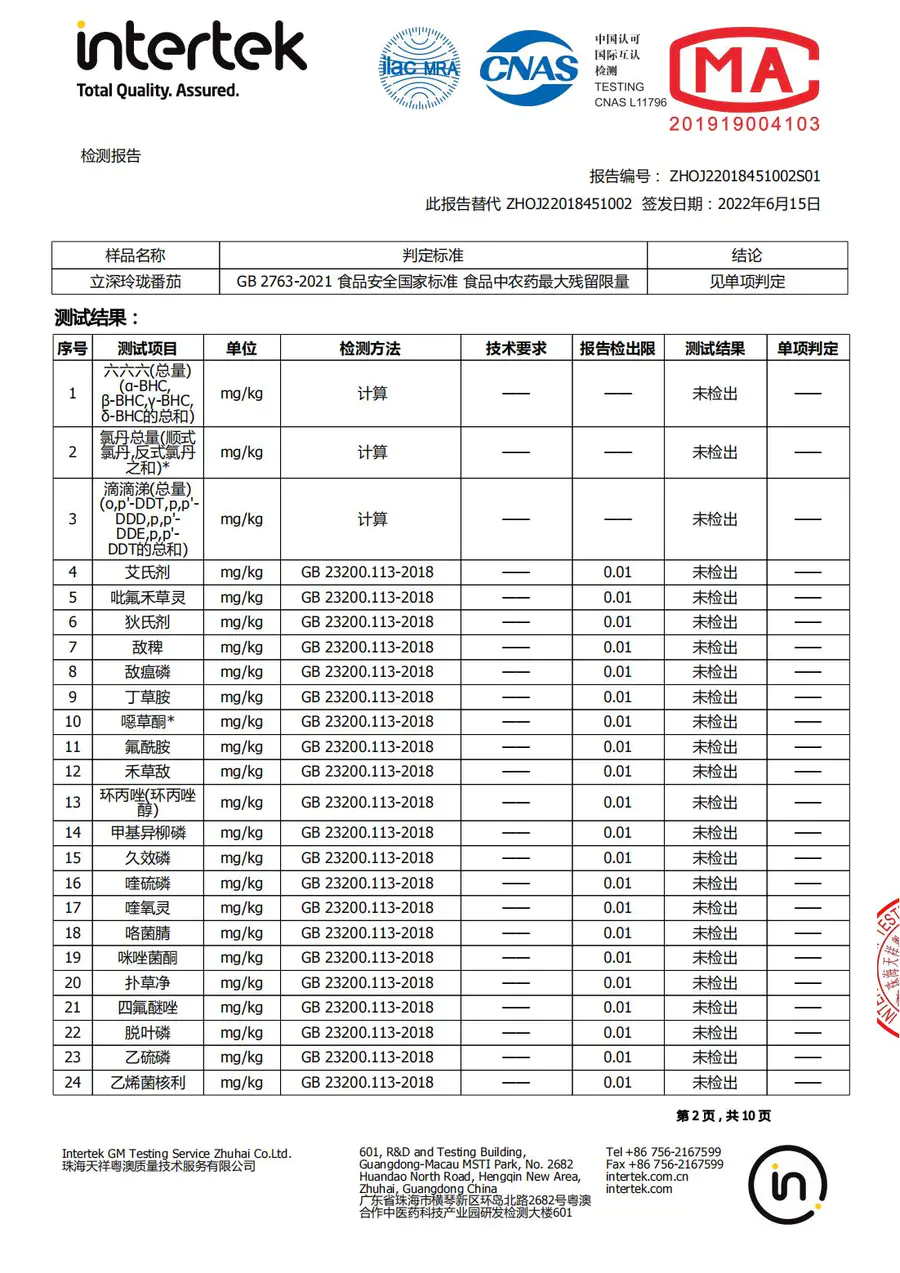 番茄检测报告2022年6月