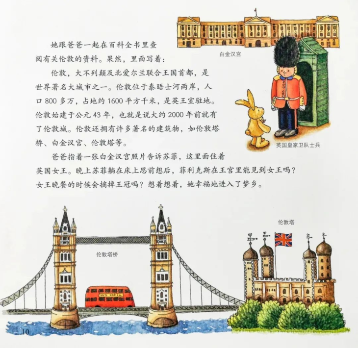 在讲故事的过程中,穿插这些知识点,孩子比较容易理解接受,而且在跟着小兔环游世界的过程中,也感受到了文化的多样性,有利于培养孩子开放性思维和国际化的视野,可谓一举多得。