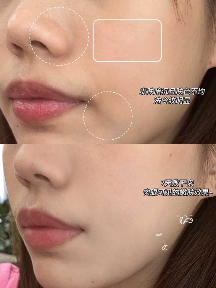 不过法令纹、鱼尾纹特别严重,苹果肌松弛的姐妹强烈建议用足28天,你会看到脸上的褶子完全被撑开,皮肤又像20岁般饱满透亮,弹力十足!