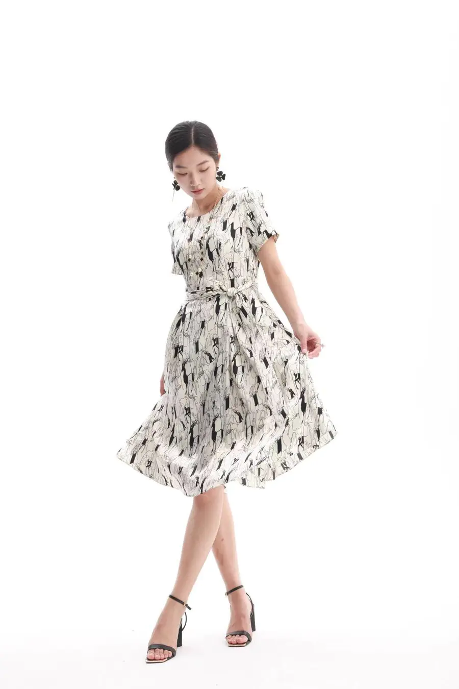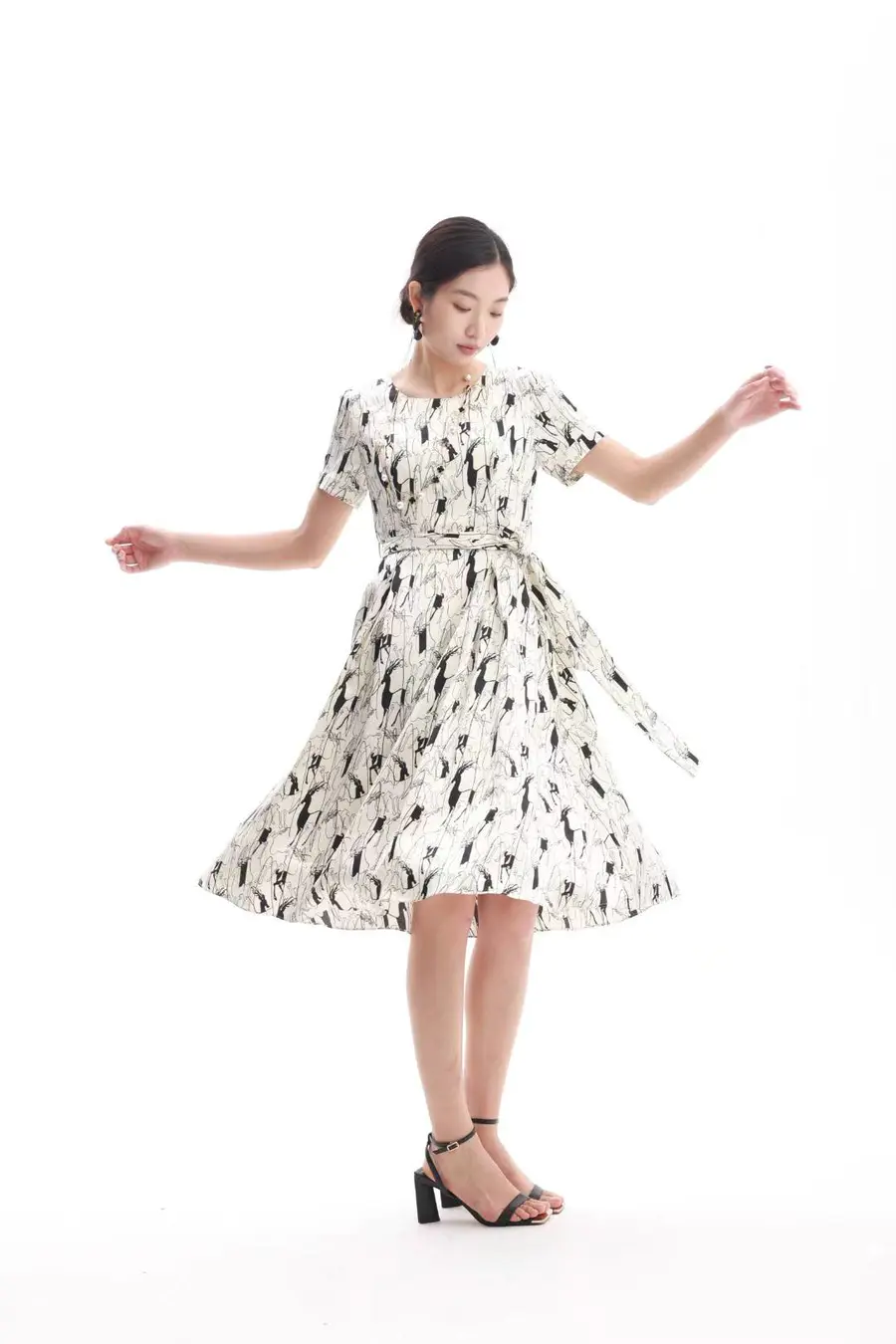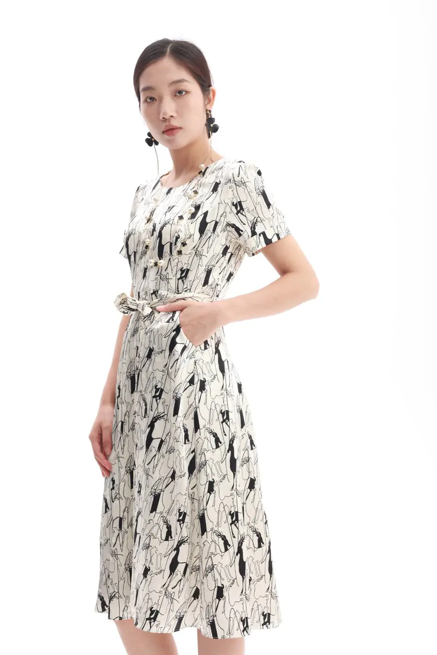 浅杏色缎面 裹着破晓时分的温柔 黑色兽纹以水墨笔意 在裙摆练习奔跑的 抽象派语法 本布腰带束起 一整片林间的晨光 侧袋里装着 未写完的夏日十四行诗 当缎面掠过光线 你便成了行走的美术馆特展