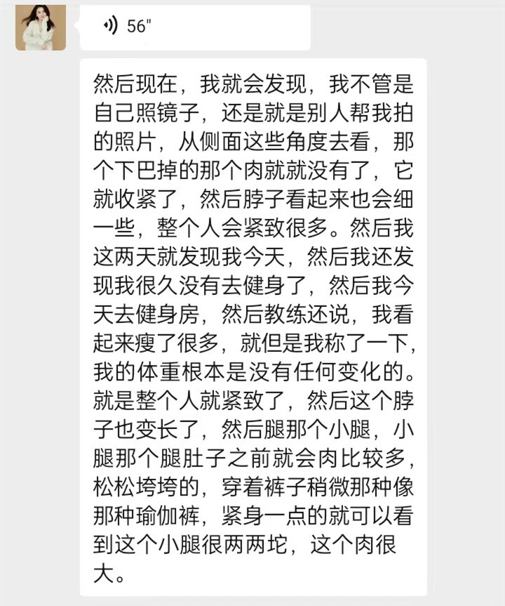 她说自己的“气”有明显的变化,肉也紧致精干了很多,身体的柔韧性也提升了,皮肤也润滑干爽了,而这都是坚持练功的好处!